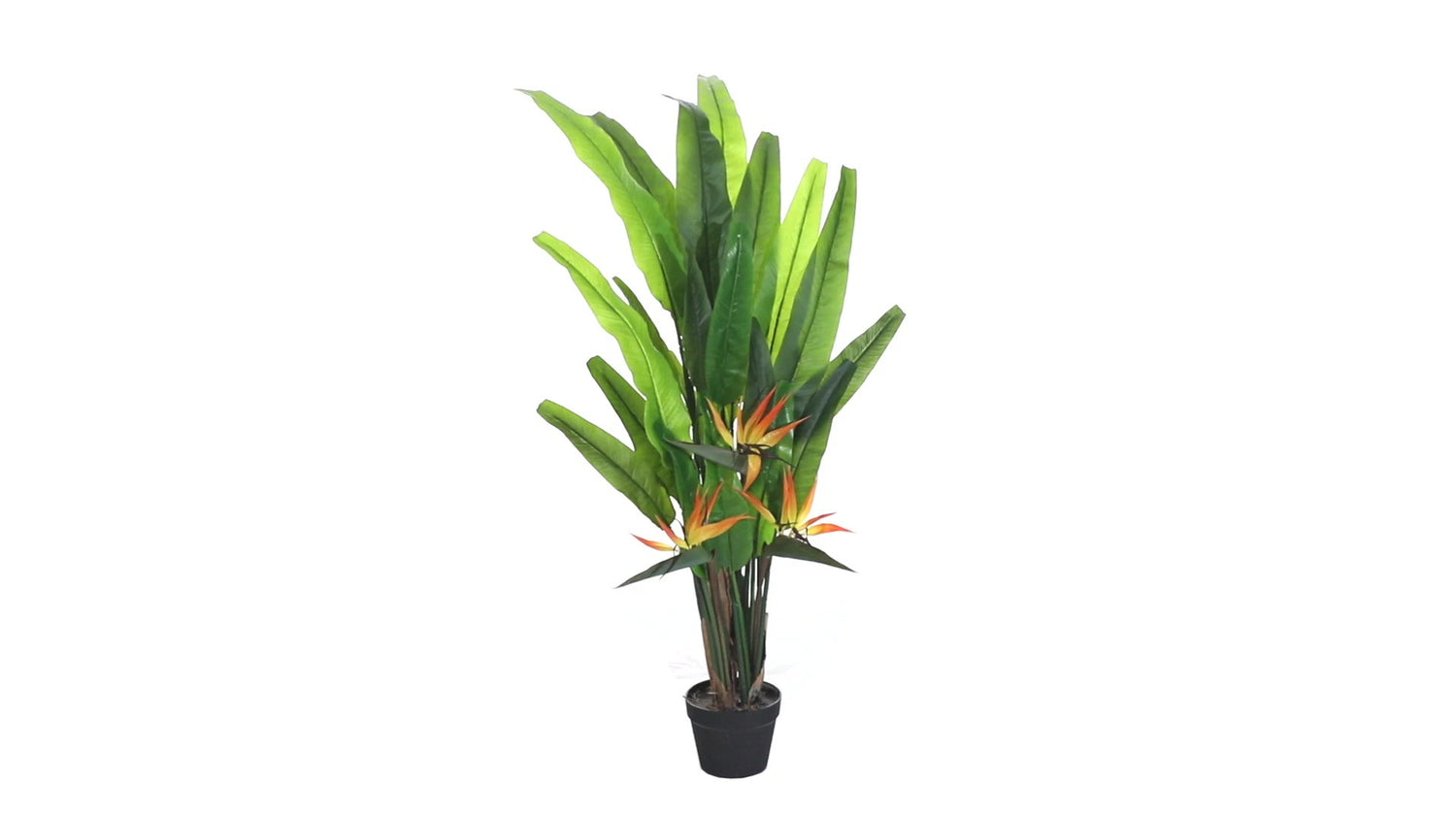 Freshen up bare spaces with this artificial birds of paradise plant. Standing majestically at 4.5’, it boasts a bright collection of exaggerated leaves beautifully accented with vivid floras peeking out. With its bright coloring and size, it will instantly add fresh color to bare spaces in a home or office.