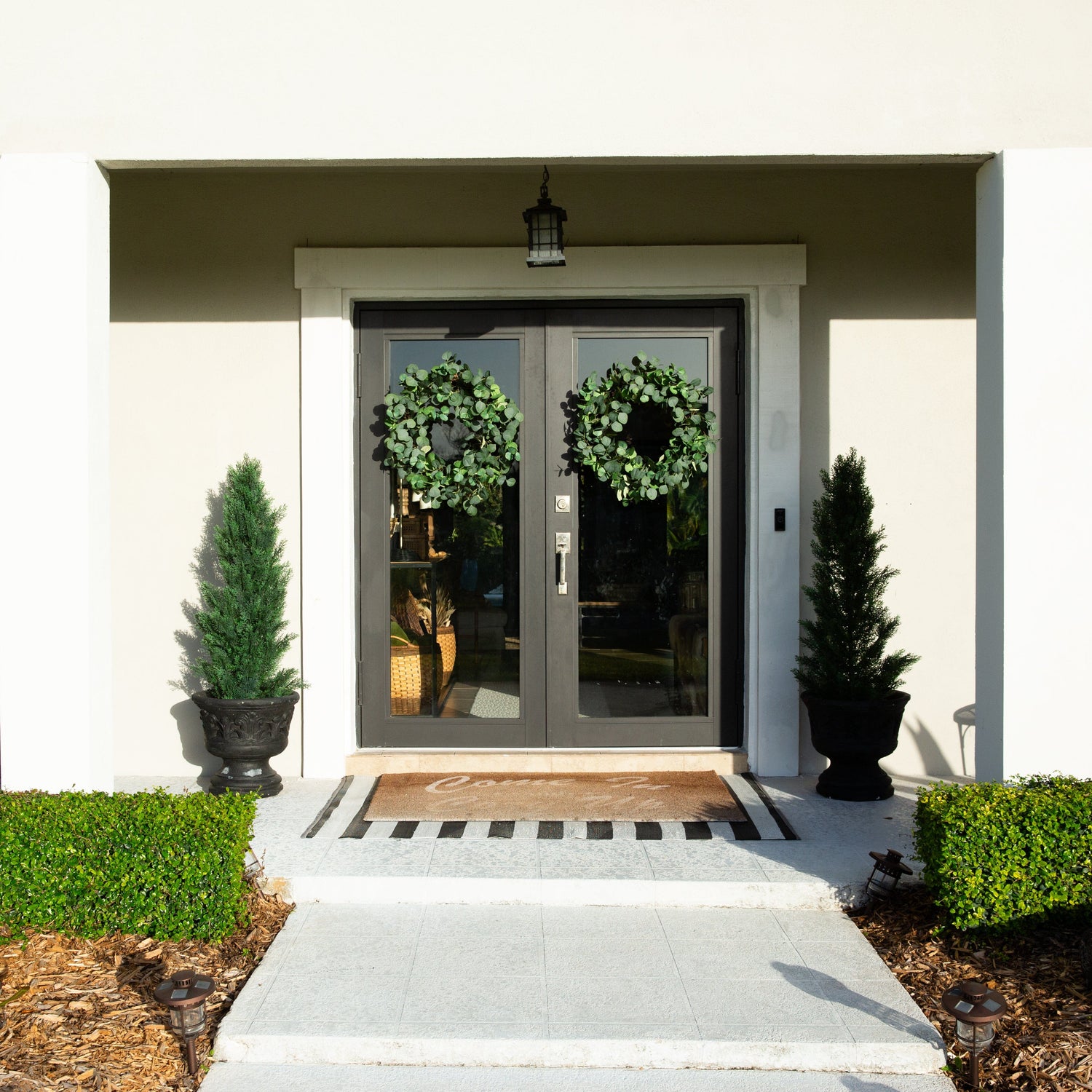 Enhance any living space with the trendy artificial eucalyptus wreath, that’s perfect to liven any room in your home no matter the space. Crafted from high-quality materials, you’ll notice the detail in the eucalyptus petals against a bed of twigs in the background. Inspired by nature, the leaves, are in clusters just as in the wild, with naturally occurring details throughout the silhouette for a lifelike touch. Feel free to bend the branches for a unique, one-of-a-kind look.