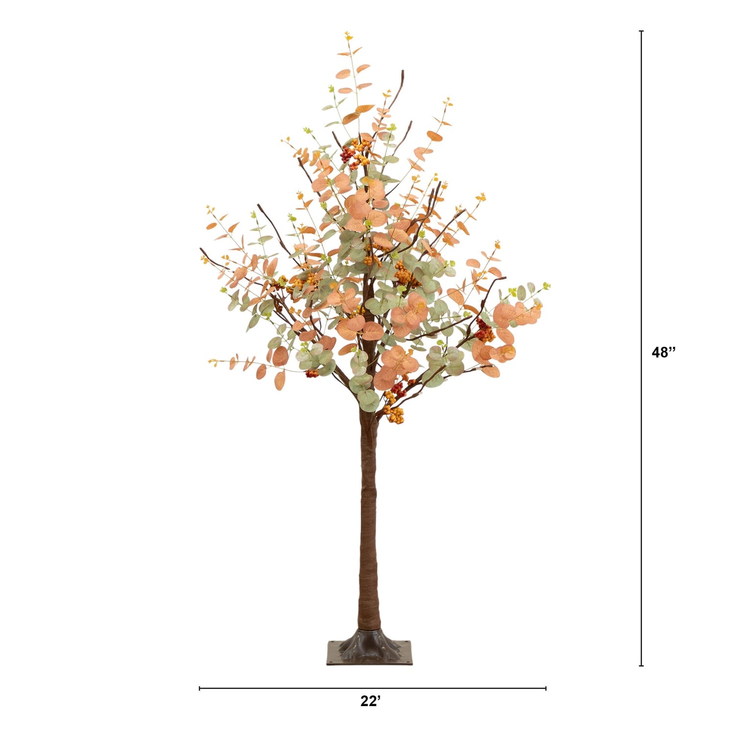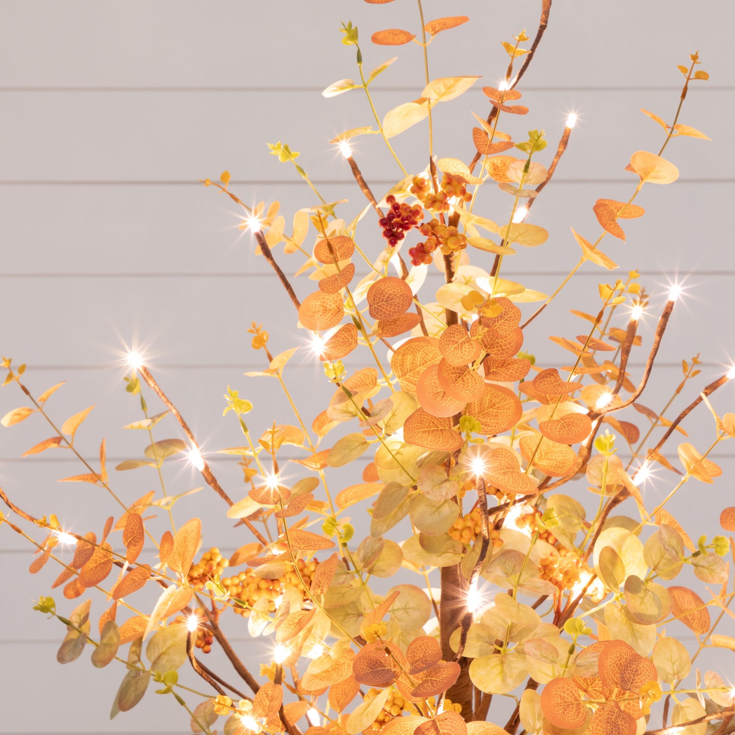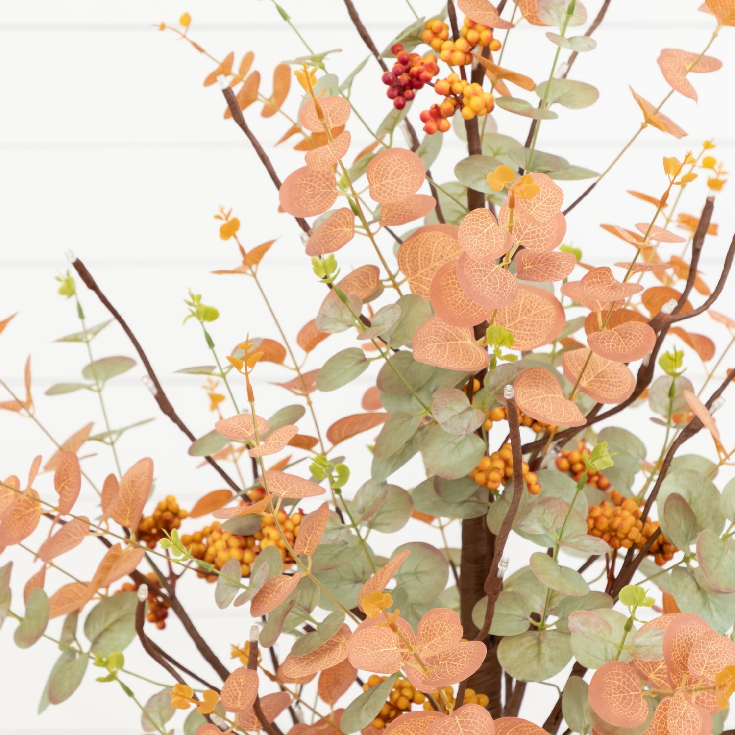 4' Pre-Lit Autumn Eucalyptus Artificial Fall Tree with Pinecones, Berries and 60 Warm White LED Lights