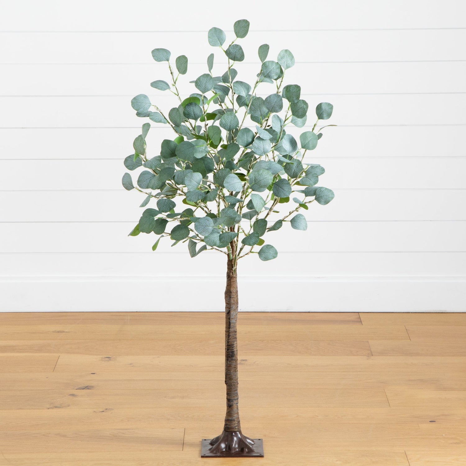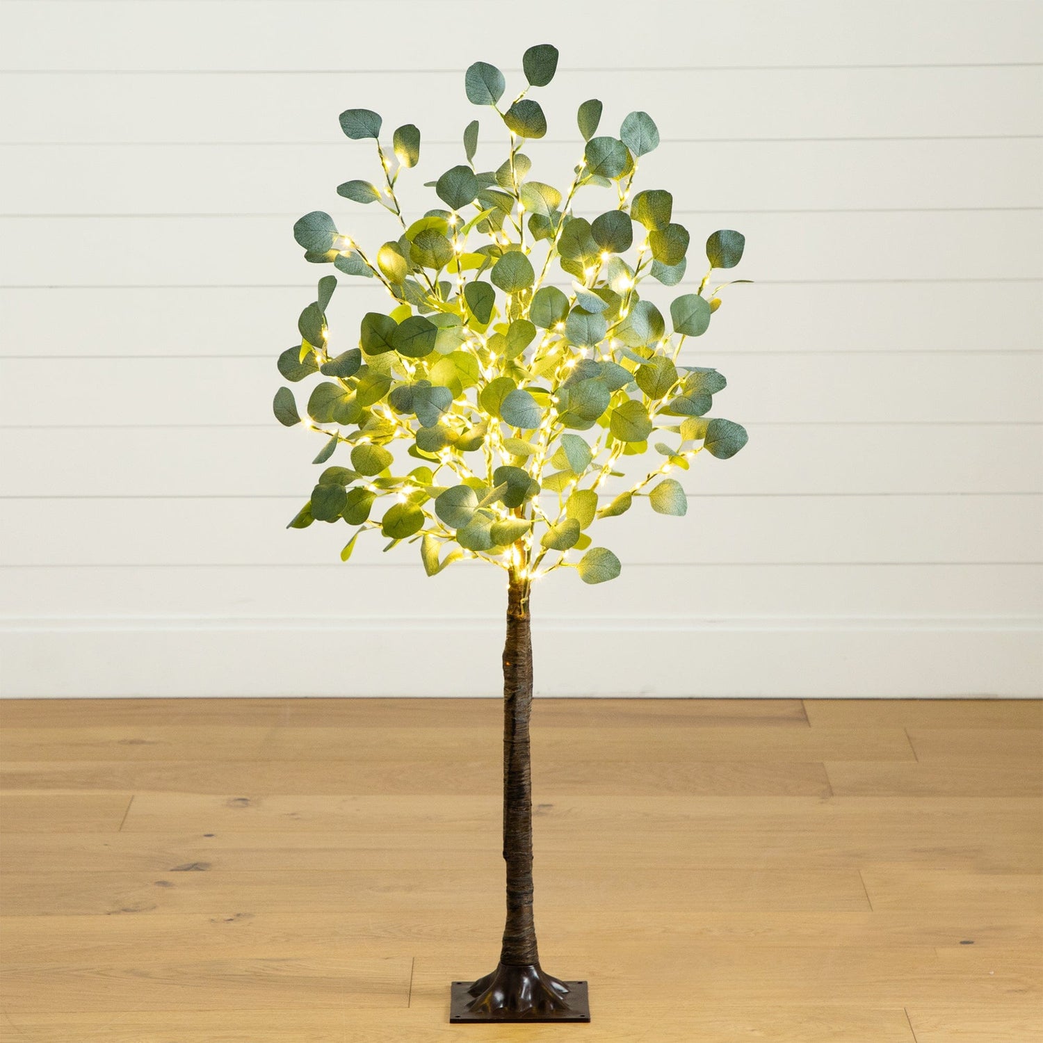 The artificial eucalyptus tree with lights will bring that soothing, cozy glow in your space when you need to relax. Inspired by the dreamy Floridian countryside, you'll see the attention to detail in every leaf in shades of smoky green, just as in the wild. Crafted from high-quality materials, feel free to bend the branches. for a custom look. Accented with 240 energy-efficient LED lights, this piece will become the centerpiece of your home. Standing 4' from a sturdy base, DIY and display in a planter of your choice. Great for desktops in need of a light touch.