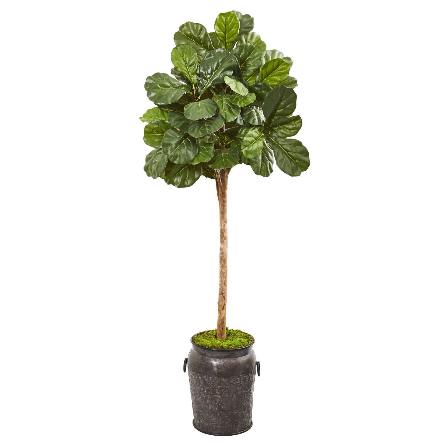 Our artificial fiddle leaf trees are an all time favorite and this 6’ tall version is no exception! Boasting lifelike leaves in bright vivid greens, this realistic looking tree would look just as great in a family room as it would in a bedroom. Accompanied with a metal planter accented with natural moss, it keeps natural greenery around all year round.