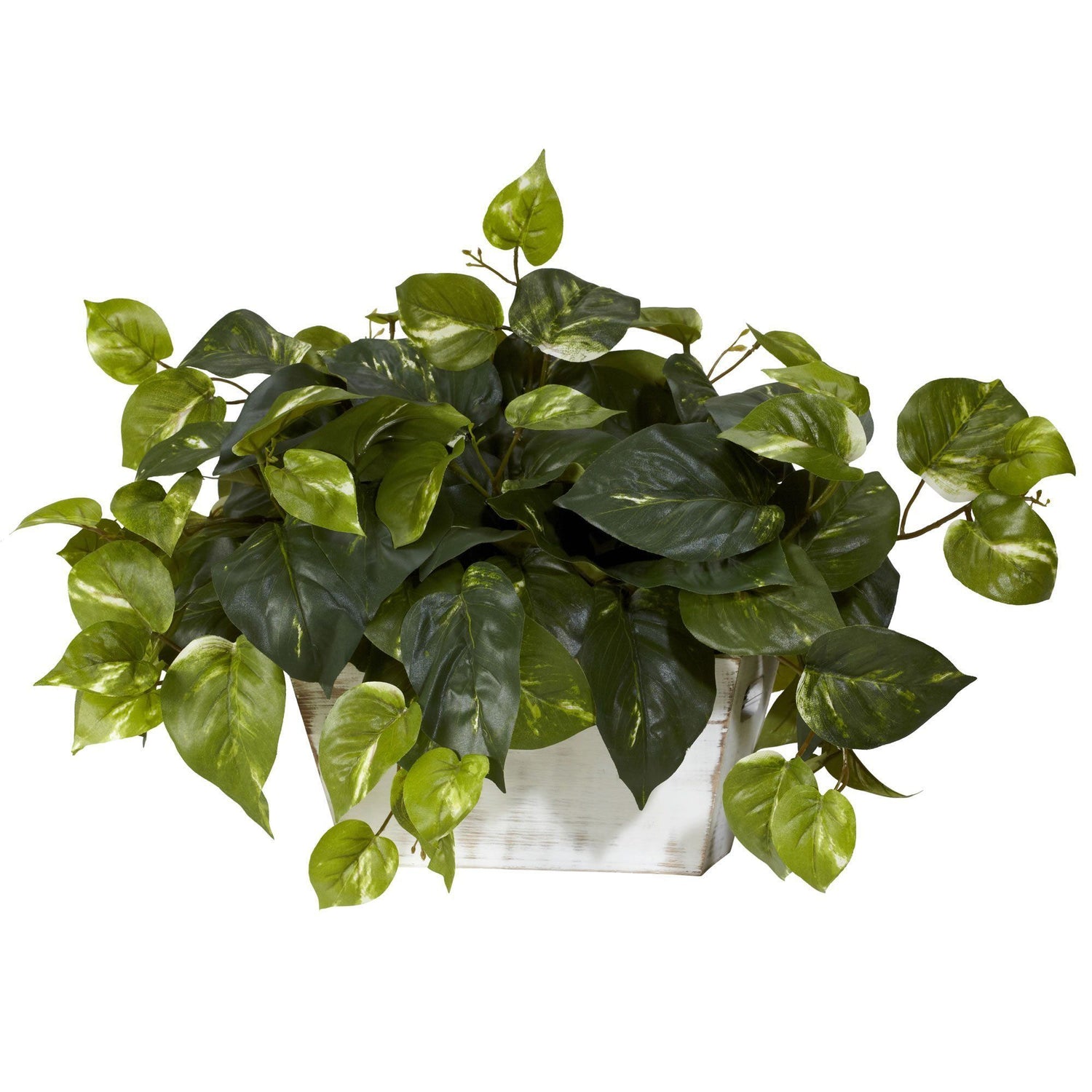 Need some greenery in your home, but want it to have some classic, old-world appeal? Then look no further than this beautiful faux Pothos plant in a classic whitewash container. The verdant greenery will last a lifetime (no water or other care necessary!), and the whitewash container gives a look of “days gone by”. And the two colors together? Timeless! Perfect for your home or office.