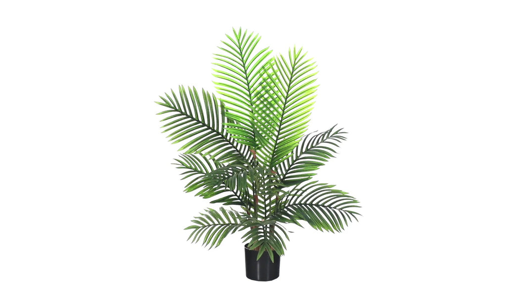 With full, smooth leaves that splay outward from several stalks, this artificial paradise palm tree will add life to any location. With a convenient 4-foot size, realistic looking leaves, and deep green colors; this piece will bring the warmth of the sun and the feel of the tropics indoors.
