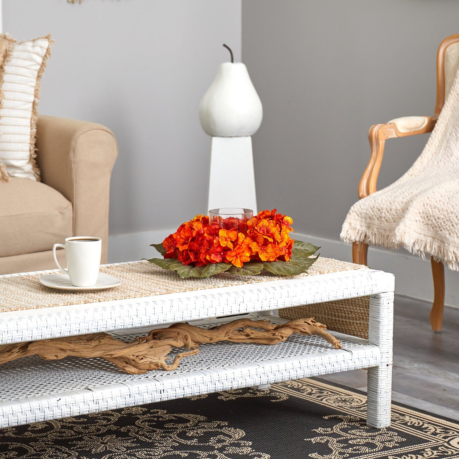 Rejoice during those spring nights where the temperature starts heating up with this Hydrangea Artificial Candelabrum. Welcome the vibrant colors and texture of the season into your space and create a showstopping centerpiece where you can gather around for a cozy night. With a width of 14” carefully call attention to this piece by housing a candle in the center (not included). Perfect for a living room or dinning room table and makes a great gift.
