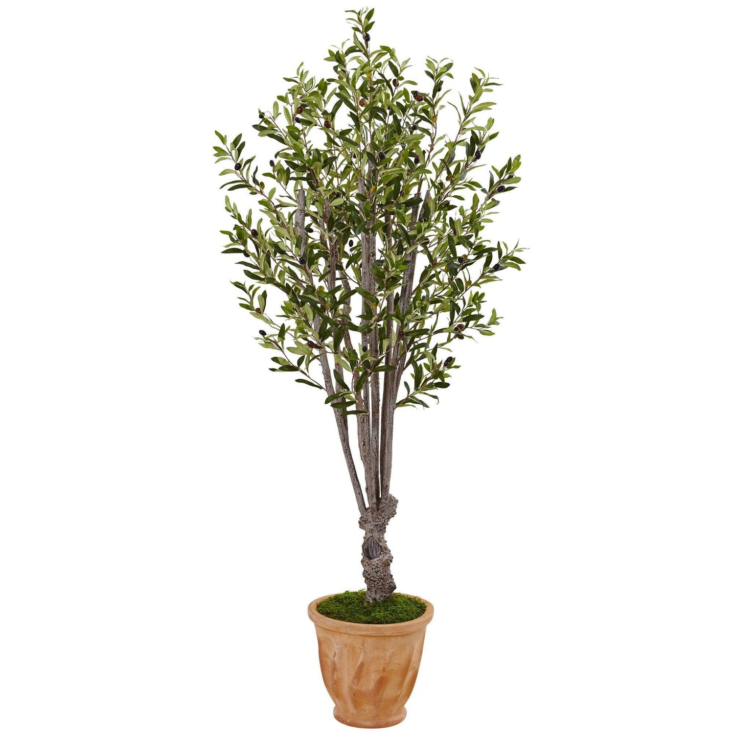 Bring the warmth of the Mediterranean into your home or office with this beautiful faux olive tree. Attention to detail and high quality materials are evident in every inch of this tree, from the lifelike leafs to the realism of the trunk. With a real terra cotta pot and natural green moss, this faux olive tree captures the feeling of summer all year long.