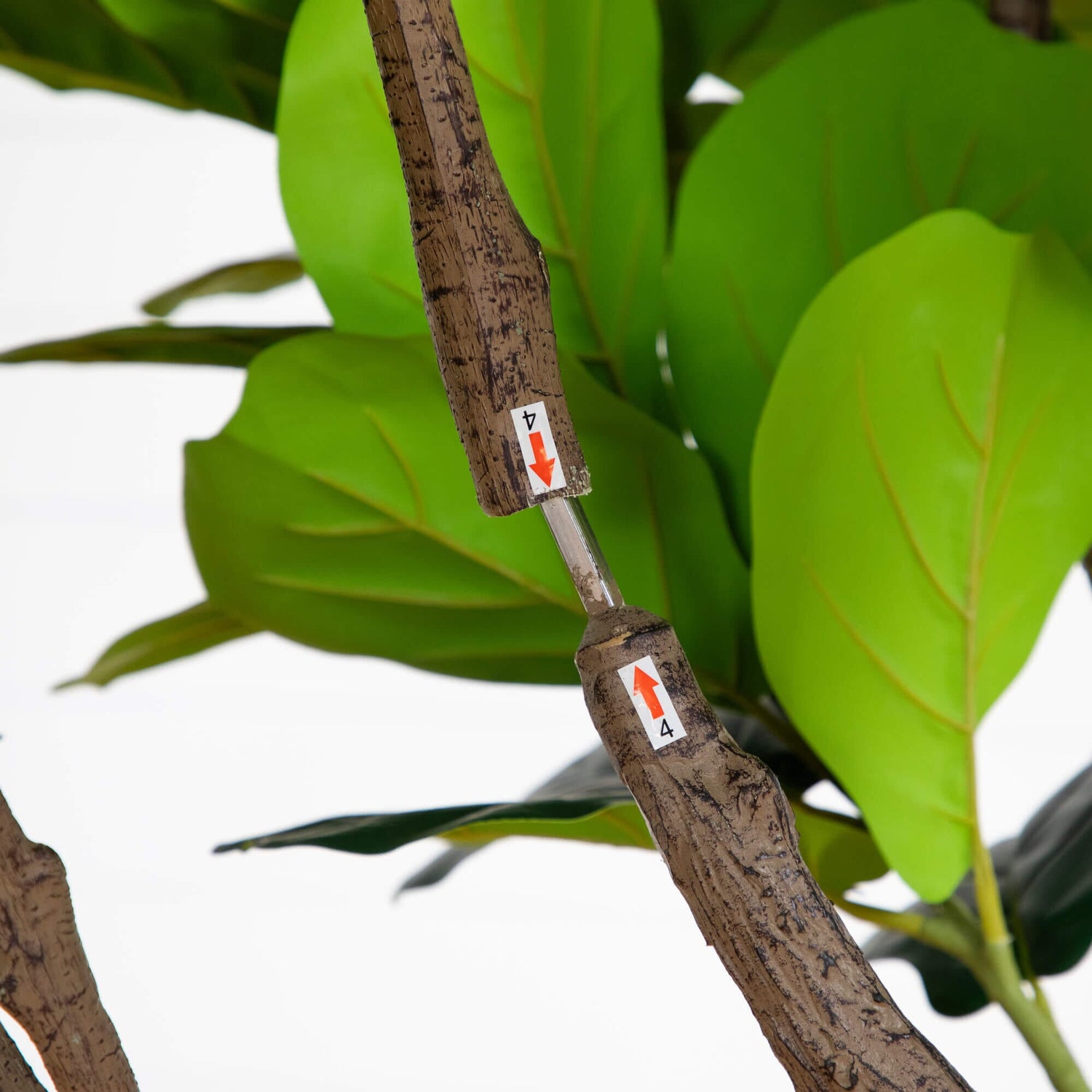 A grand artificial fiddle leaf fig tree, that's sure to be the center of attention in any gathering. Inspired by the jungles of Central Africa, this tree is difficult to maintain, but you can still get the verdant look with this piece sans the care. Crafted from high-quality materials, bend the branches to fit in your space and create a custom look. Standing an impressive 6-Ft from a white decorative planter, showcase in any area. The full head of leaves brings the tropics no matter where you live, anytime.