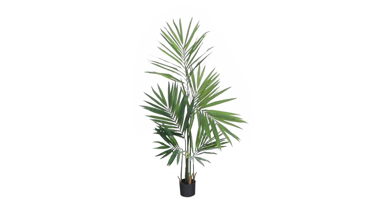 We know the year is heating up when we see plants like the Kenita Palm. And now you can experience that “summery” feeling all year with this beautiful 5’ recreation of a lush, wispy Kenita Palm. With 7 stems and 124 leaves, it’s perfect for dancing in the summer breezes (even if those breezes are made by your indoor fan!) Makes an ideal gift, too.