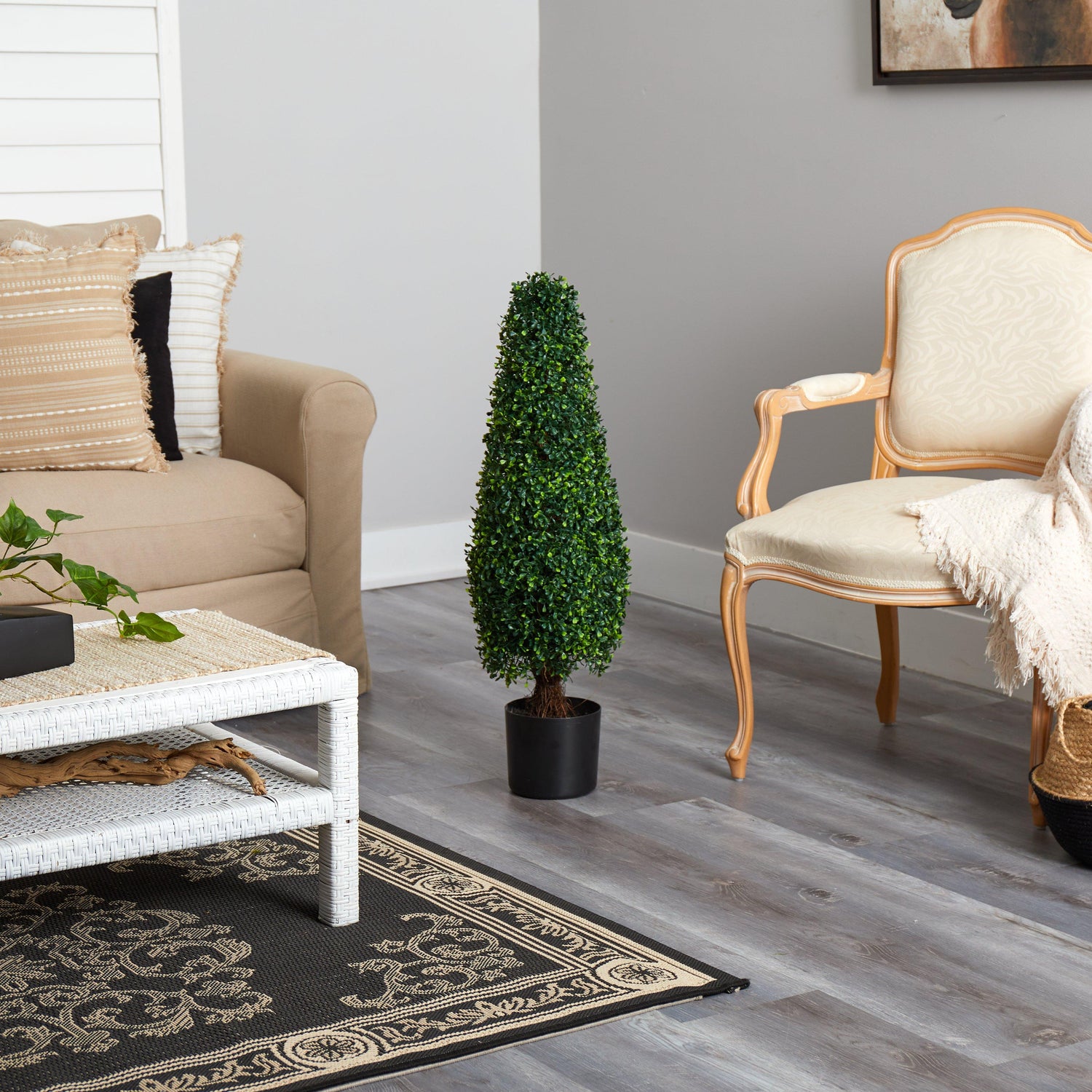 The boxwood is a classic "decorating hedge", and why not? It's pretty, dense leaves make for perfect canvas for a talented horticulturist sporting a trimmer. Here's a boxwood that's trimmed into what's called a "tower topiary" shape, and ready to enhance your home or office décor. Best of all, this is an indoor/outdoor decoration, and fully UV resistant.