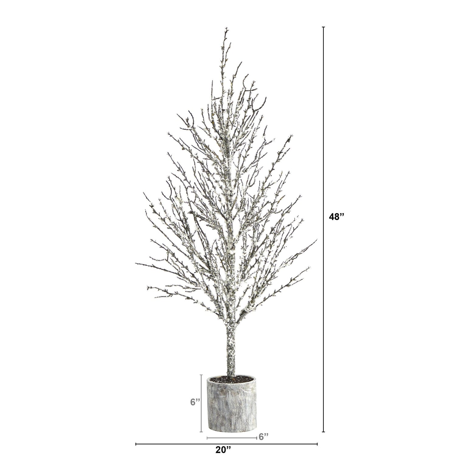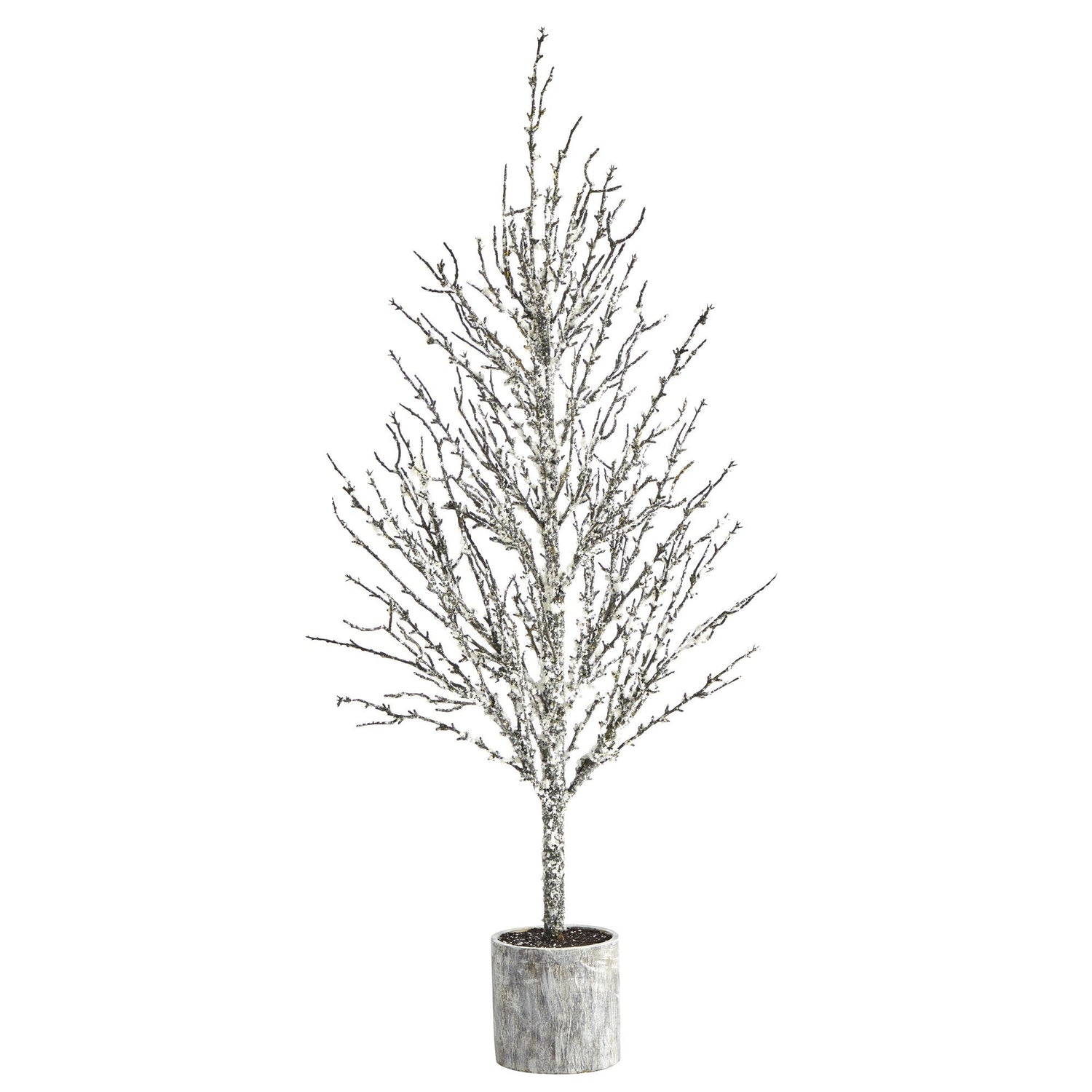 Create your own winter wonderland with a minimalist approach with the help of this artificial tree. Sparse by design, it features countless of bendable branches stemming from a single, stabilized trunk - all frosted with a light dusting of snow faux to evoke a magical winter setting. Standing 4’ high stabilized in a decorative planter, this seasonal accent would make for an enchanting addition to your holiday decor scheme.