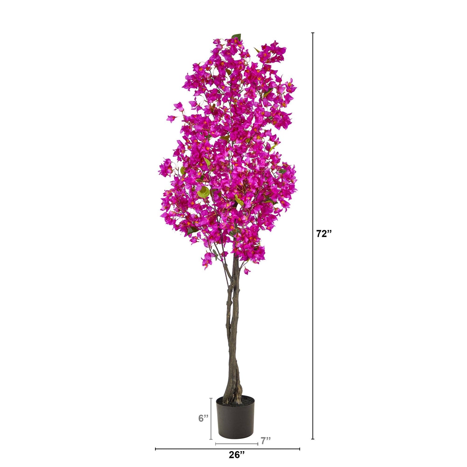 If you feel like showing your true colors, feel pretty in pink with this Bougainvillea artificial tree. A palette of vivid colored flowers stem from a realistic brown trunk. Inspired by nature, the lifelike flowers will brighten and refresh any corner. Standing at 6', from a nursery planter, bring a feminine touch with vibrant flowers. Designed and approved by horticulturists, display in any room that needs to bloom such as bathrooms, home offices or kitchens.