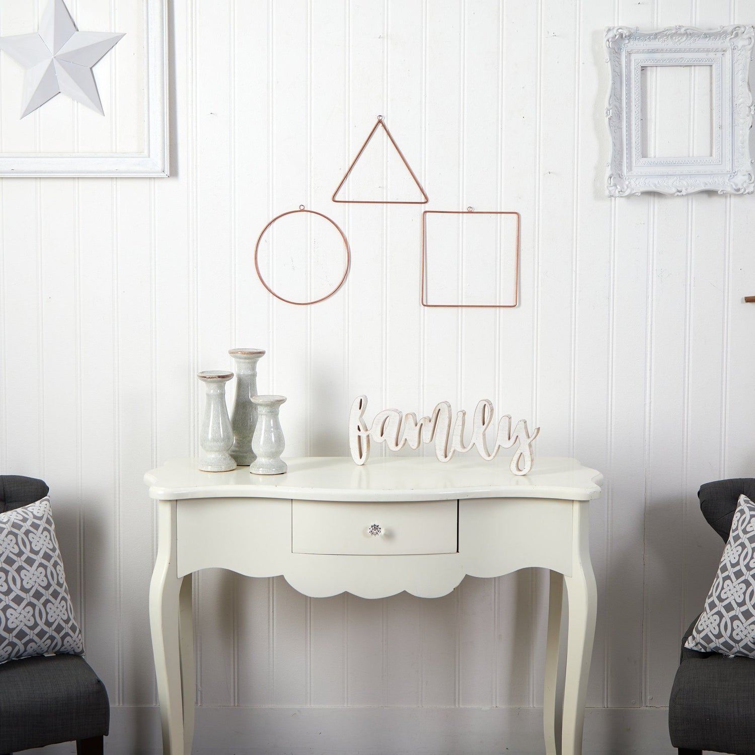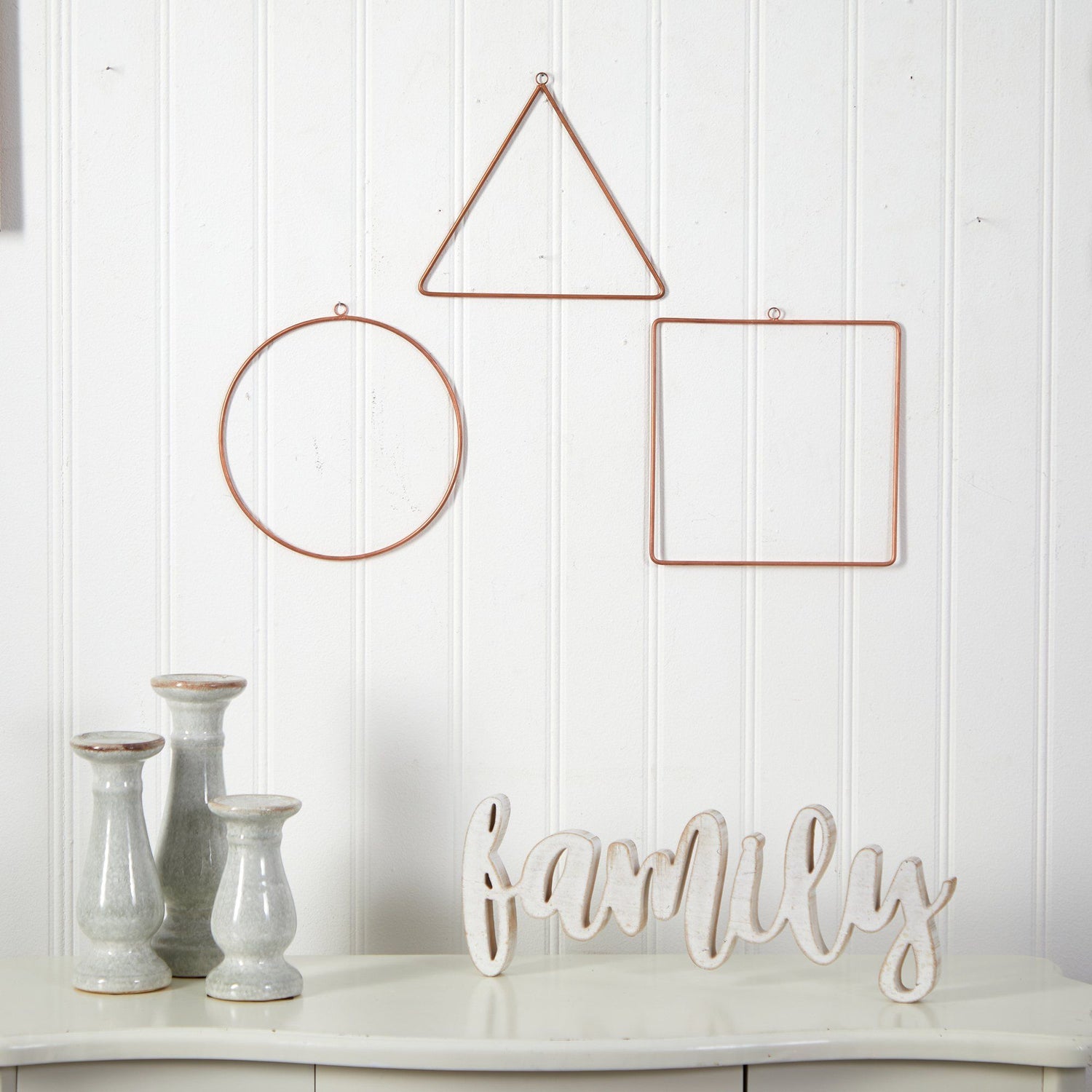 If you're seeking a fun way to spruce up your walls but don't feel like making a drastic change, this metal hoop wall art décor does the trick. In a sleek brass finish, complement any modern décor scheme that needs a touch of color. Hang this set of 3 together or throughout your home. Get creative and display this multipurpose wall art in any pattern. With a length of 10", this set of 3 is the perfect accent for those hard-to-decorate-for spaces. Makes a great gift, as well.