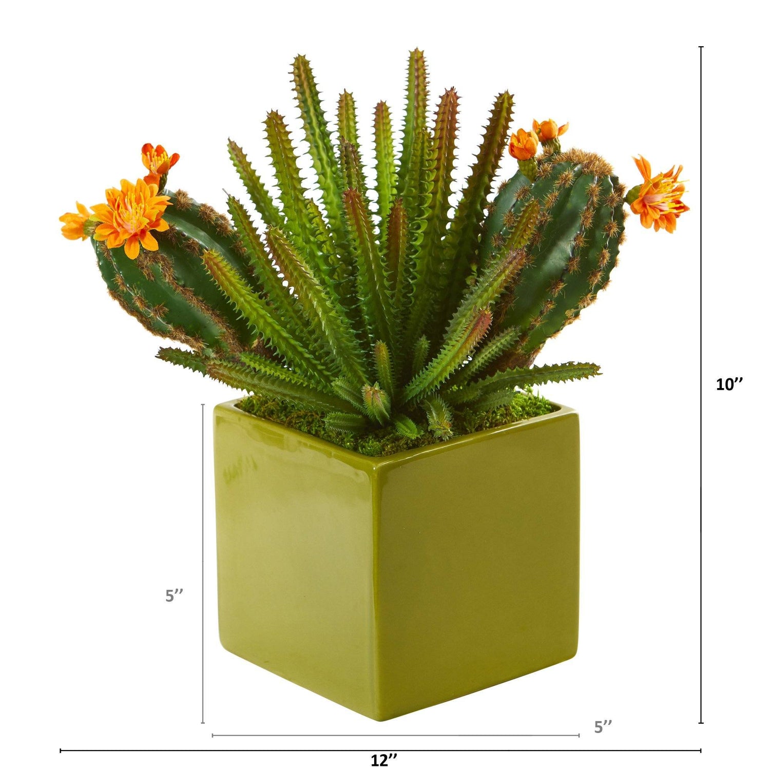 Add realistic greenery to everyday spaces with this artificial garden of mixed succulents; boasting various kinds, this faux-living garden features an overgrowth of lifelike replicas that admires will have a hard time believing isn’t real. Standing 10” tall from a green planter nestled with natural moss, this fake plant is great for highlighting tight, bare corners.