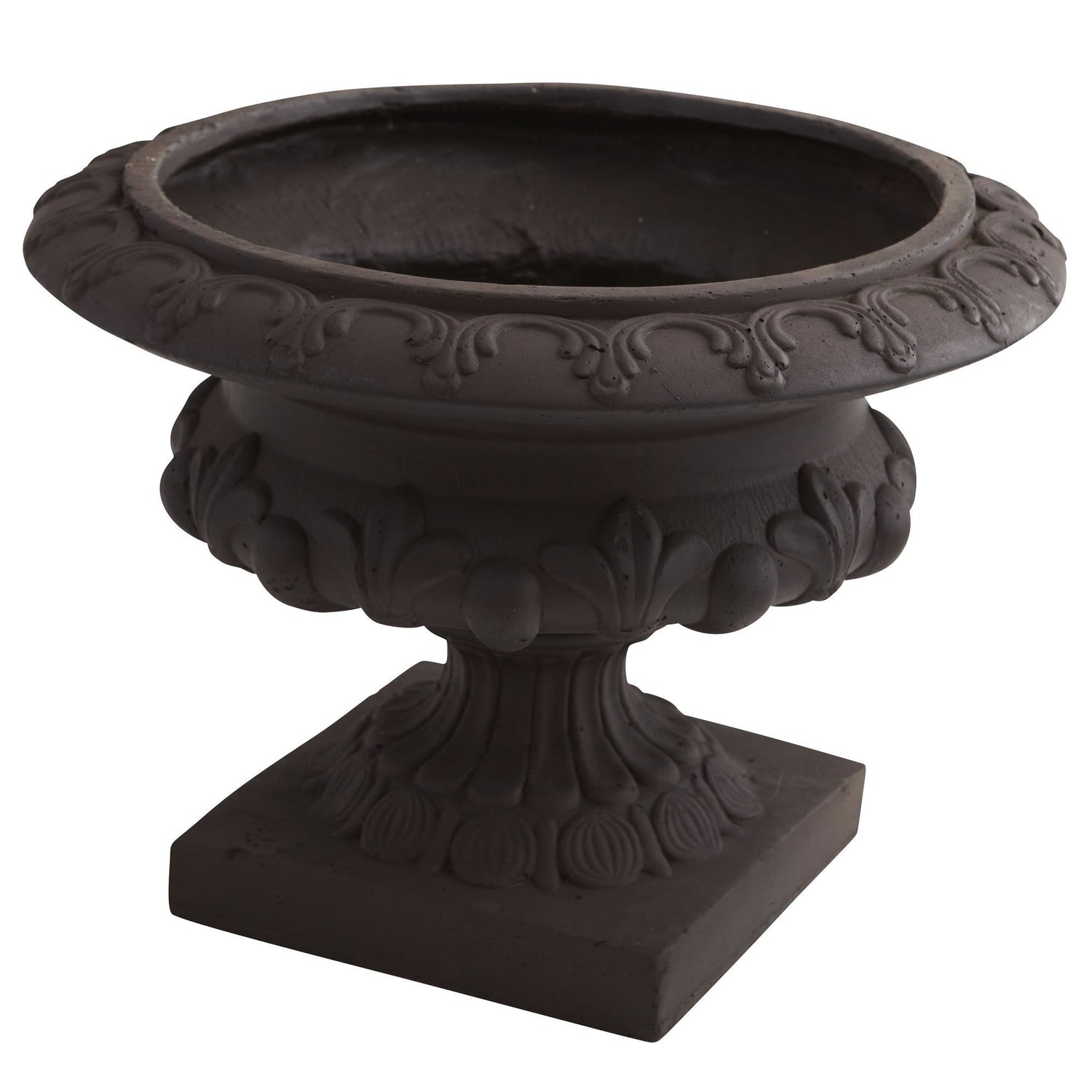 Able to be used indoors and out, this decorative iron colored urn can be a handsome touch. Consider using it as a planter near your entryway for a regal palm or tall agave. Alternatively, this well-made urn could be used in an office or by the fireplace to add a stately air.