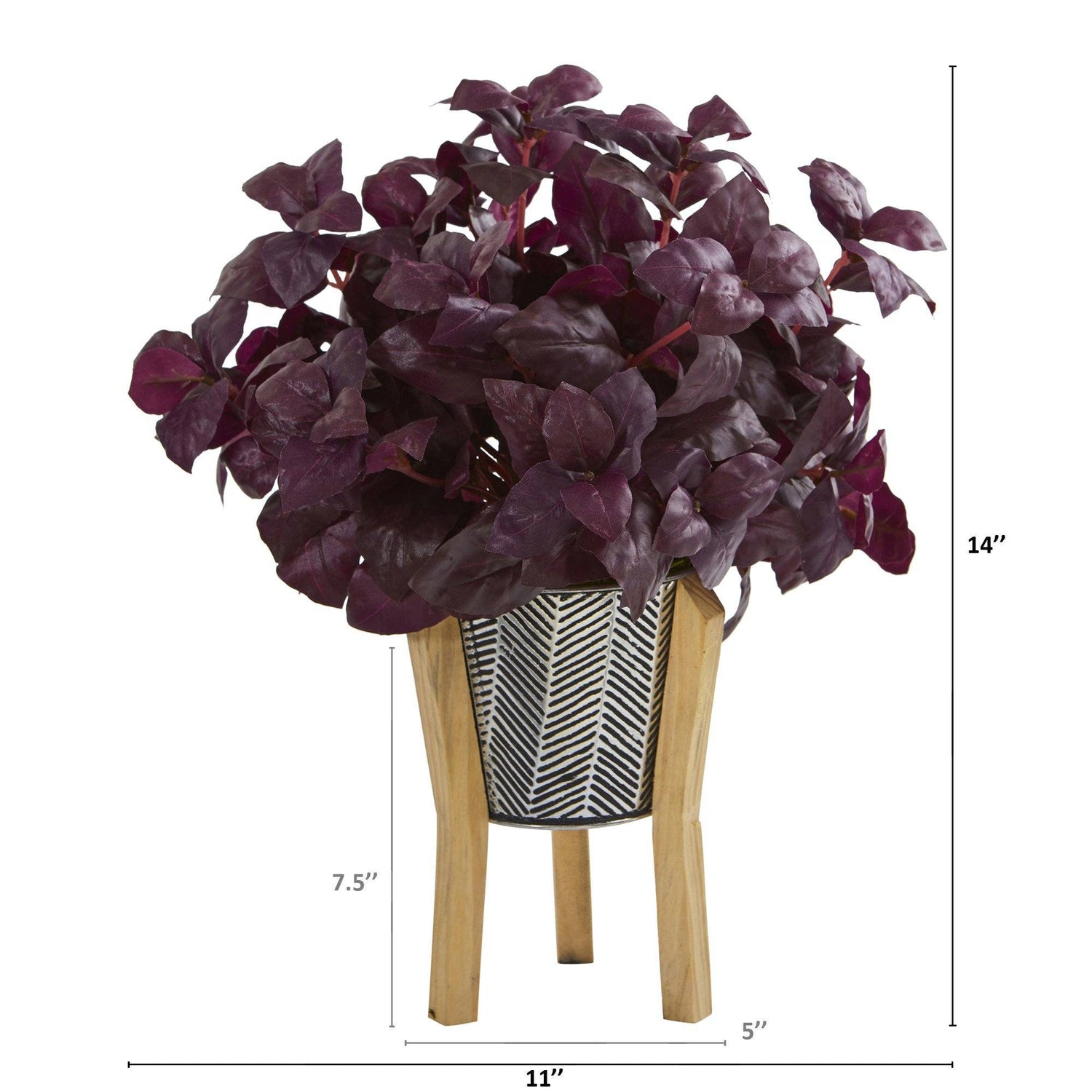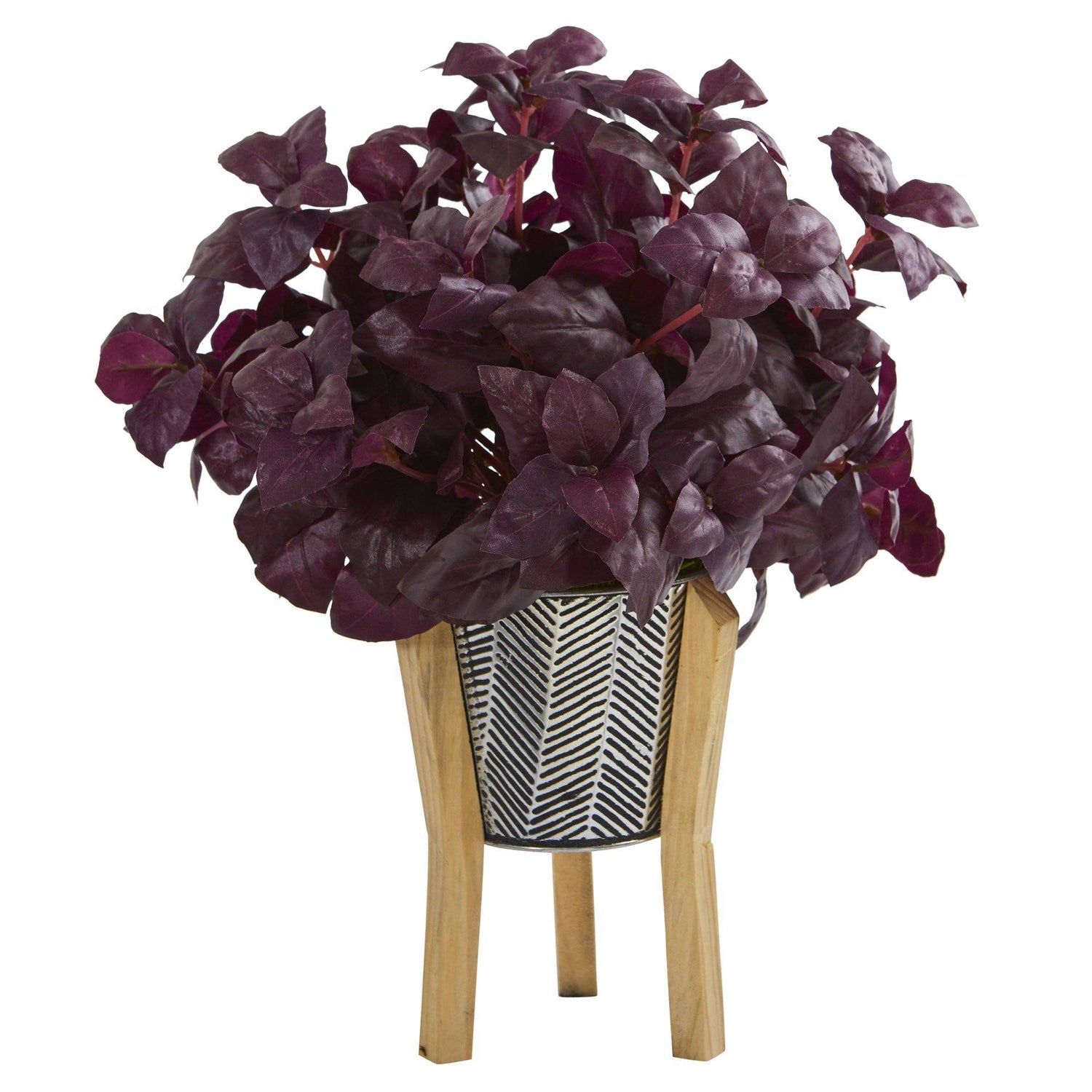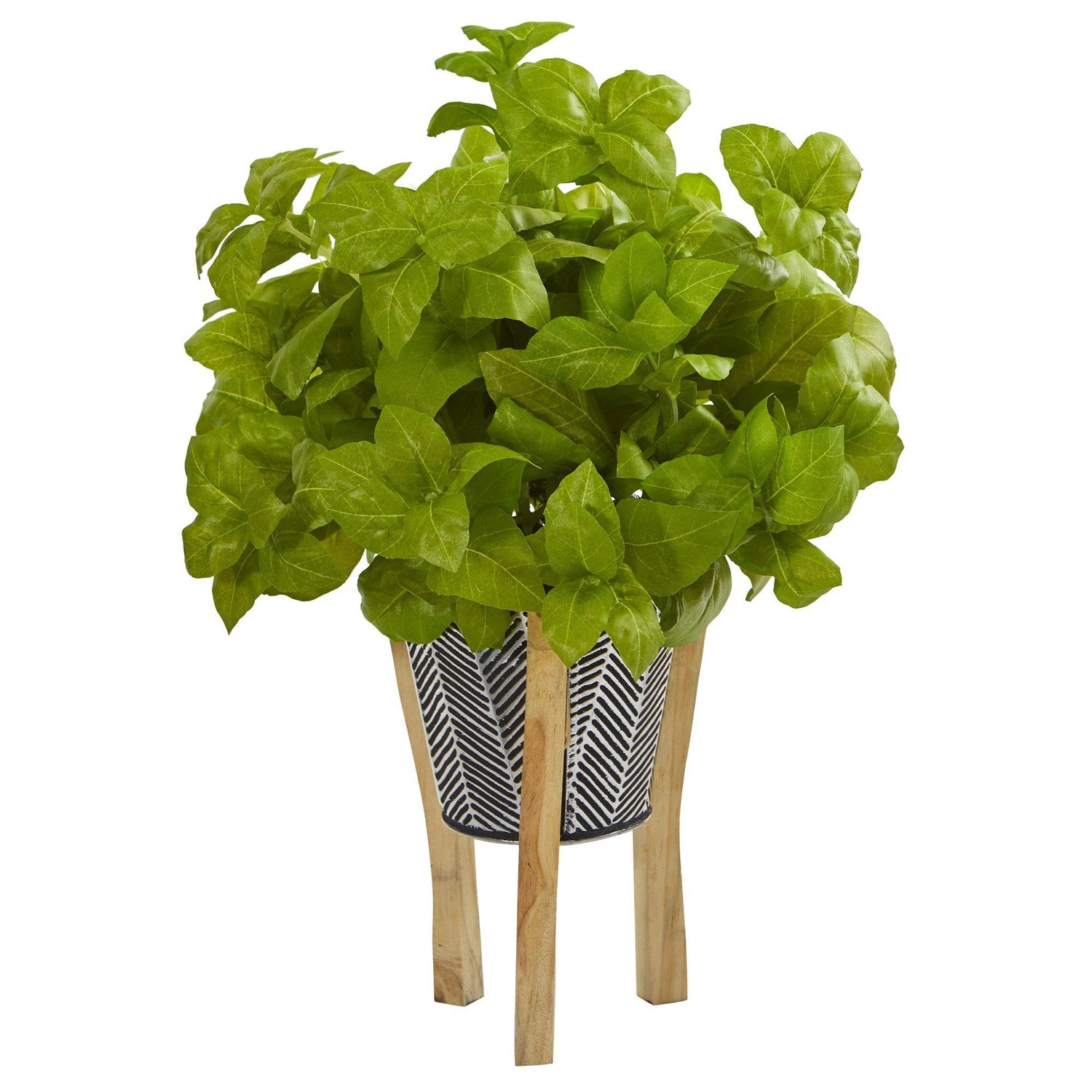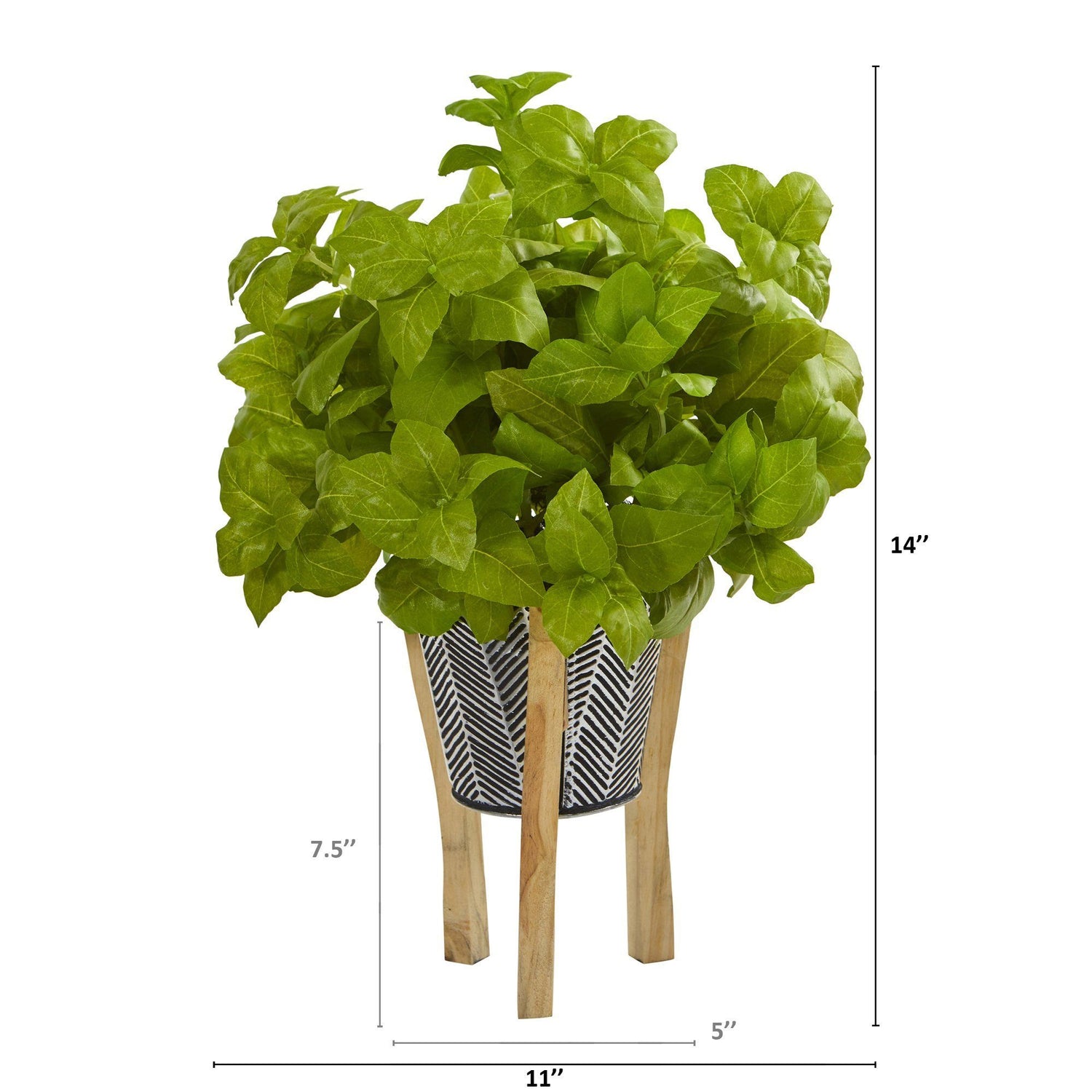 Create your own indoor (faux) garden with this set of this artificial plants, each boasting an overgrowth of realistic looking basil foliage showcasing naturally occurring qualities in bright, earthy hues. Standing 12” high from individual standing tin planters, these fake plants are only available as a pair but can be displayed singularly or as a pair within a dedicated space.