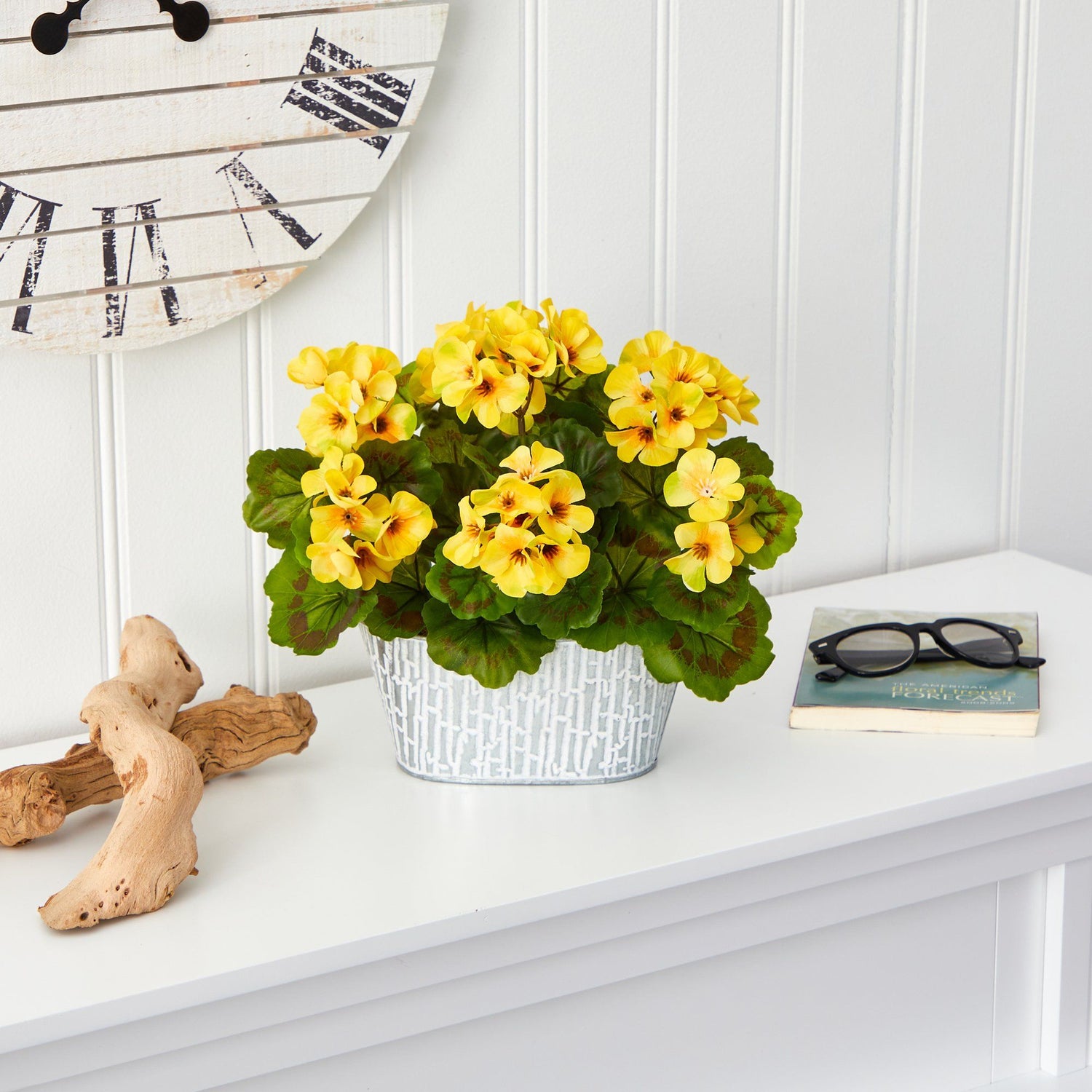 Beautify all parts of your home - indoors or out! - with the vivid coloring provided by this artificial geranium plant flaunting a collection of intricate silk flowers carefully nestled amidst vibrant green leaves peeping out from underneath - all of which is UV resistant, making it a great accent for both indoor and outdoor environments without fearing damage from the natural elements. Extending 12” wide from a white tin planter, this artificial outdoor plant would easily create for a pleasing pop of color, wherever displayed.