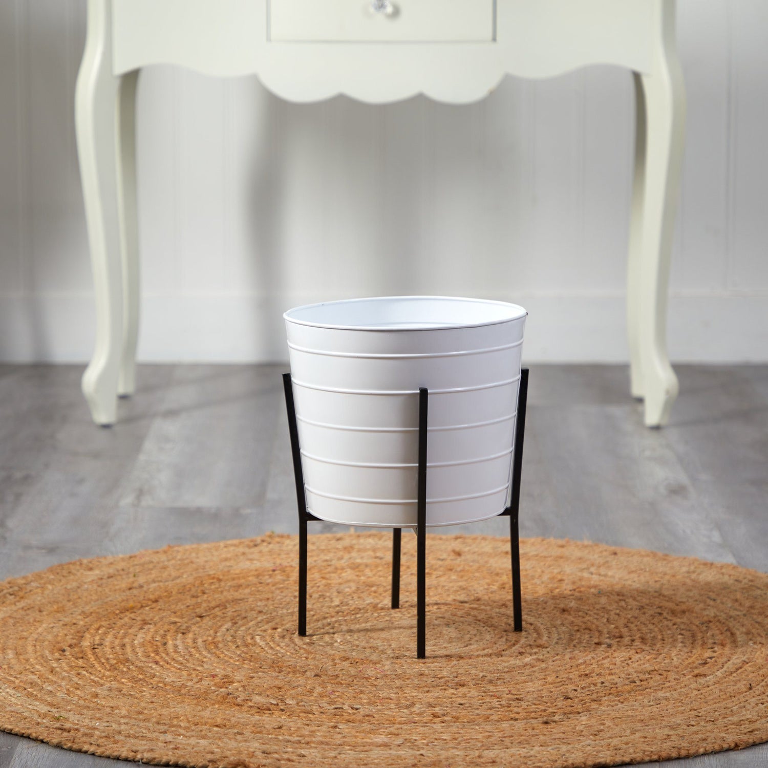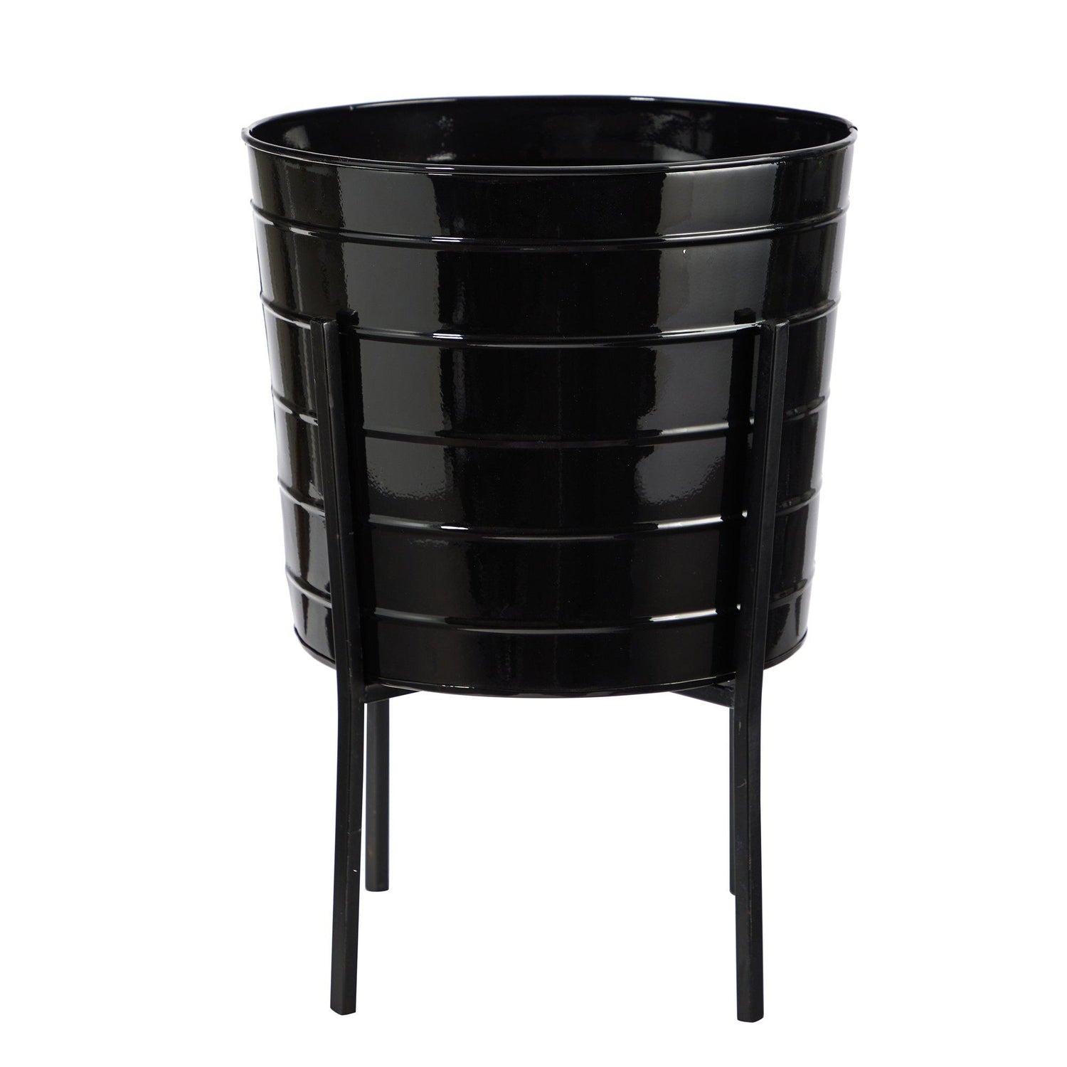 Enhance your rustic-inspired space with some farmhouse metal ribbed planters. Glossy, textured planters bring both modern, yet rugged country vibes to any area that needs a little homey feel. Standing 16", this planter complements many style décors. No drainage holes