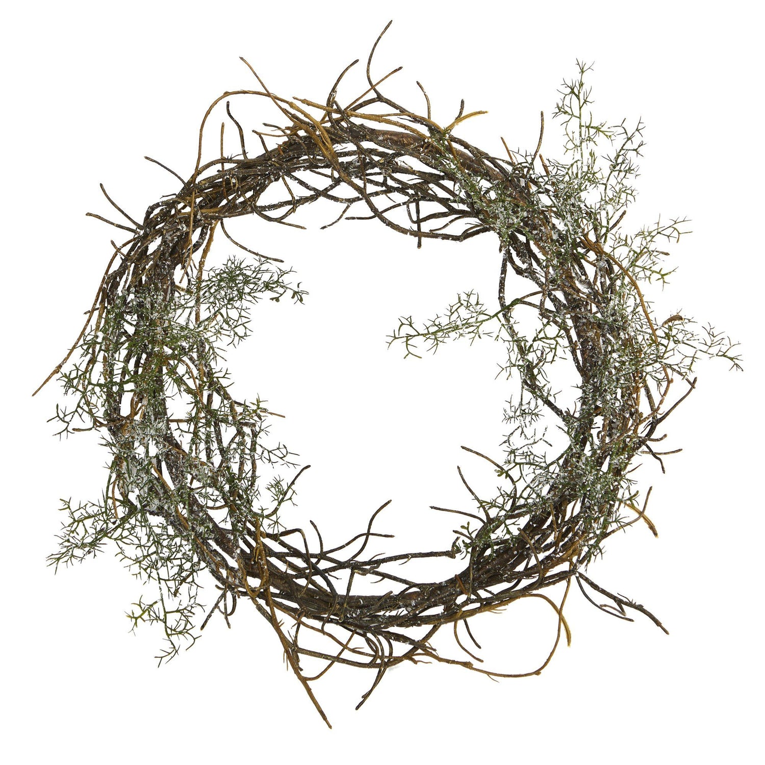 Easily transition your decor accents from autumn into winter with the help of this artificial wreath. Intricately designed with a twig base, this decorative wreath comes carefully accented with sprays of artificial grass, delicately frosted with a hint of faux snow to help get you into the holiday spirit. Perfect for wall and/or door display in either a home or office environment, this frosted 17” (in circumference) decorative wreath makes for an inviting accent and can undoubtedly help inject front-door appeal all throughout the season.
