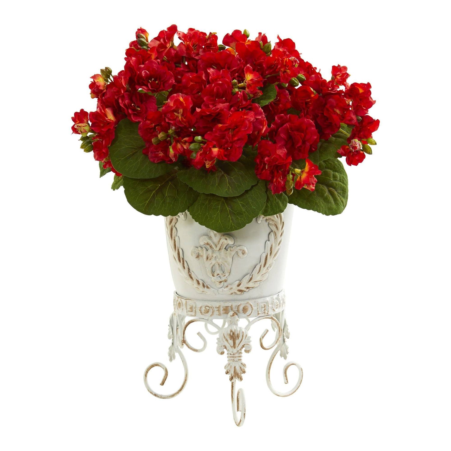 The violet artificial arrangement sports intense and dramatic red blossoms that rest on a bed of rich, large green leaves. With a classic legged planter included, it’ll create an alluring display on your console table, vanity or reception desk. When placed on the latter, you can pair it with a tabletop humidifier, LED candles opposite a desk phone to create an enchanting arrangement.