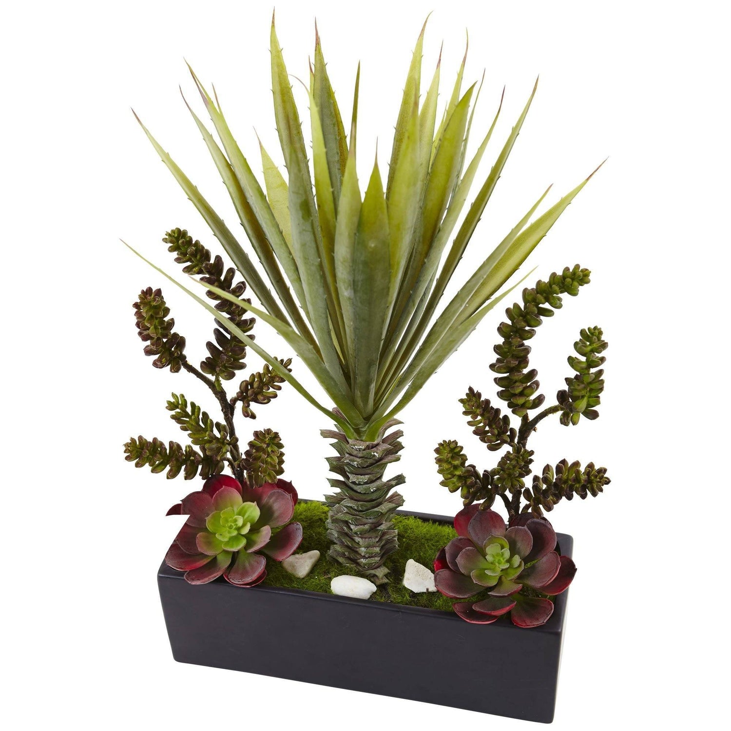 You can have a garden just about anywhere with this faux succulent garden. This zero-maintenance arrangement is ideal for a desk, dining table, coffee table, or bookshelf, and the minimalist black planter will complement just about any style.
