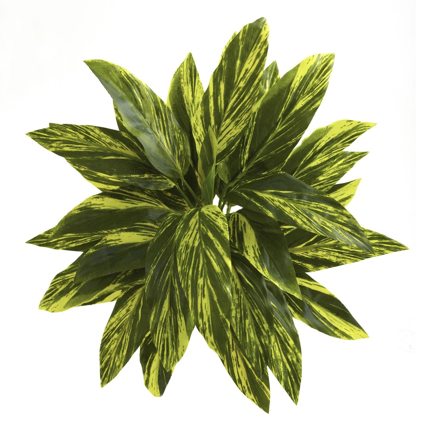You won't find any pocket of space between each leaf with this 19-inch tradescantia artificial plant. The broad, light and dark green variegated leaves are tightly clustered together, fanning out in a circular motions around a single stem. Pair this piece with a neutral toned pot that won't take away from the gorgeous leaves, and perch it at the end of your kitchen bar for a stunning finish. Arrives with six individual plants.