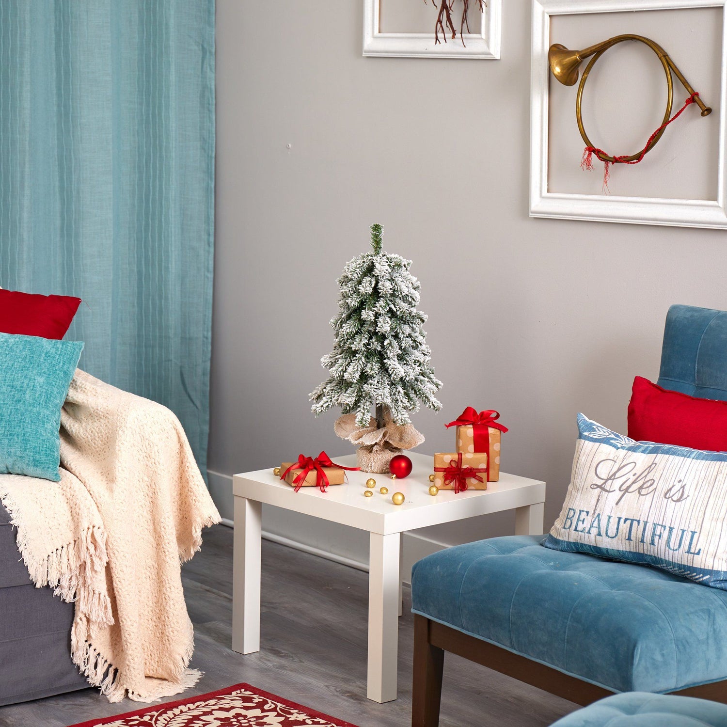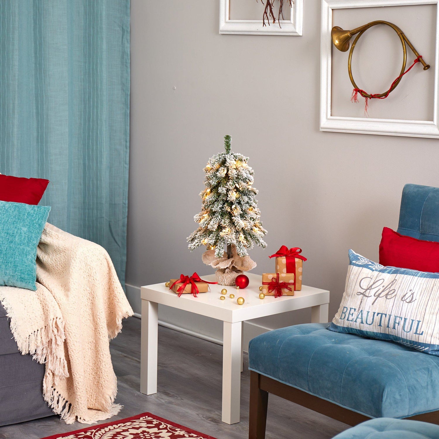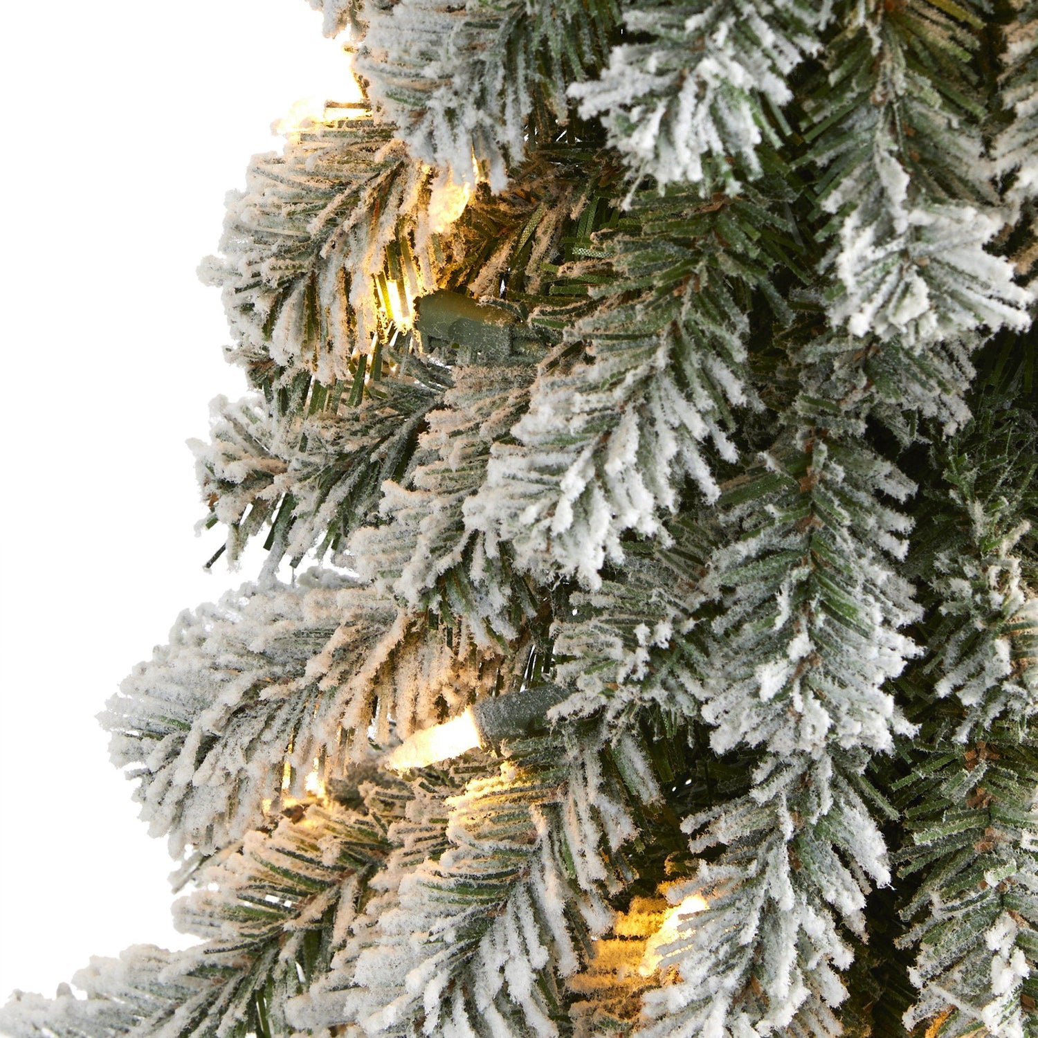 Create your own winter wonderland this holiday season with the help of this flocked artificial Christmas tree. Easy and stress-free, this artificial Christmas tree boasts various tiers of evergreen foliage made up of 92 easy-to-bend branches, perfect for showcasing all your favorite holiday accents and finished with a light dusting of faux snow to evoke the ultimate winter setting. Arriving pre-strung with 35 lights to eliminate tangles and carefully stabilized on a metal stand, this versatile 2’ tall frosted artificial Christmas tree will not only make decorating a breeze but ensure your home remains picture perfect all season long.