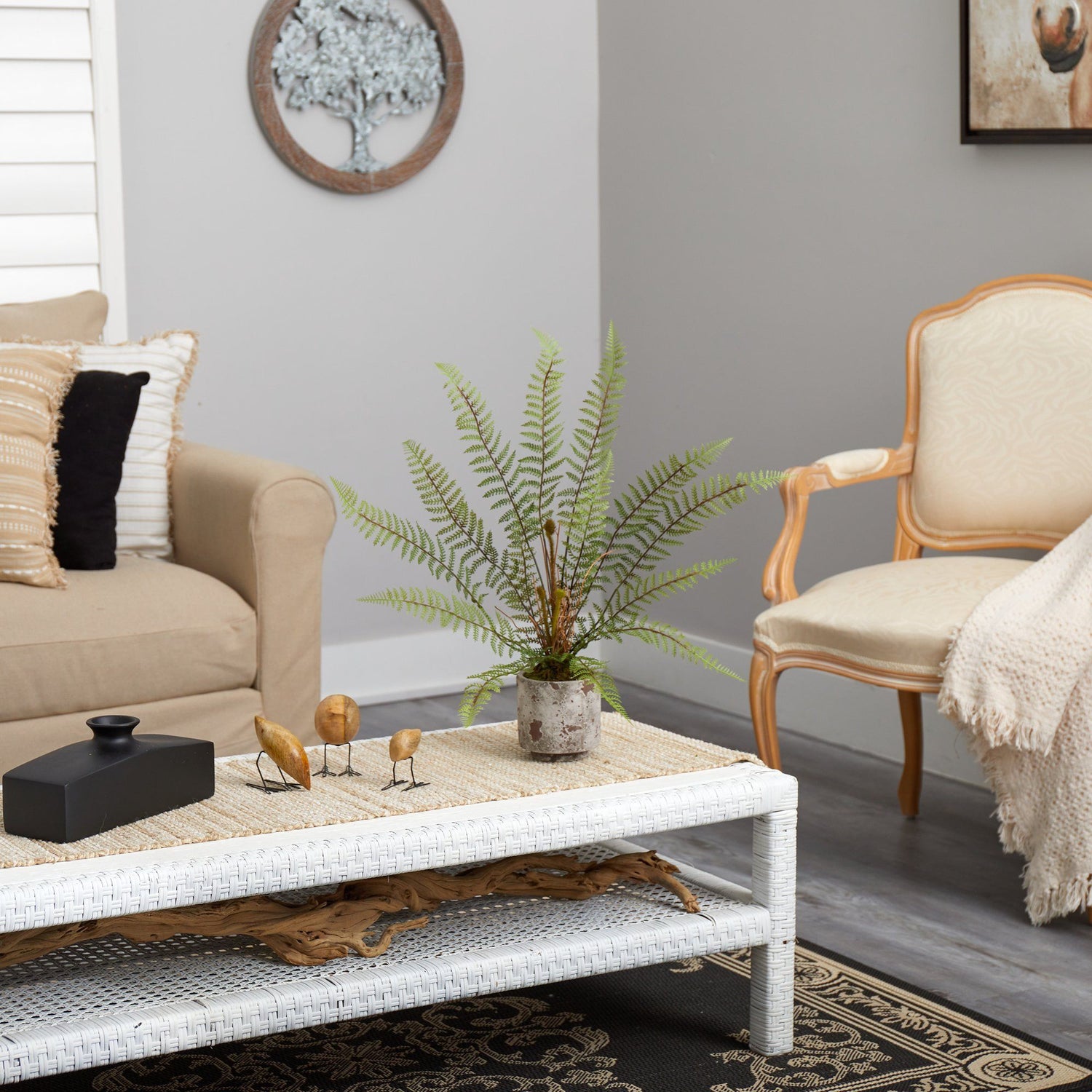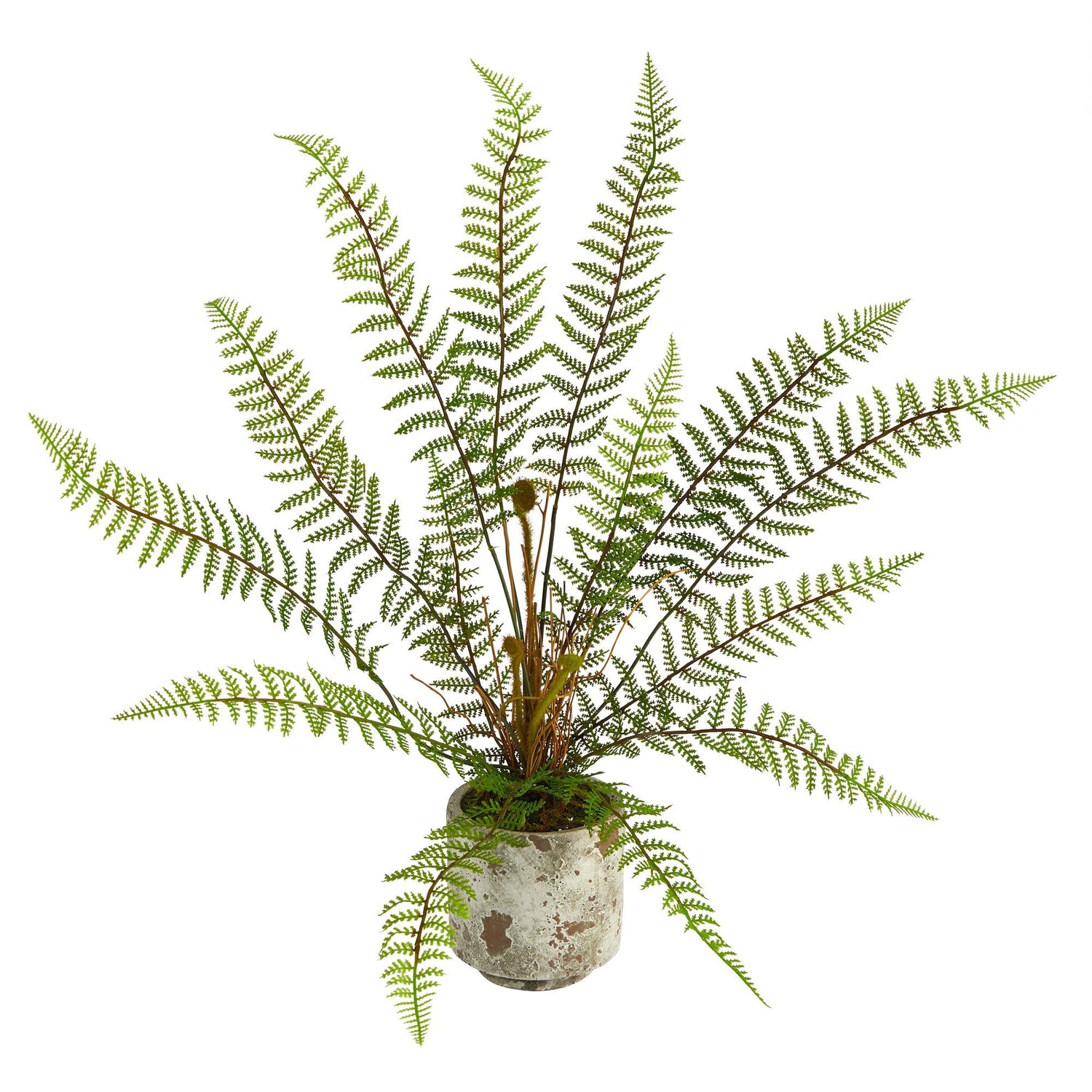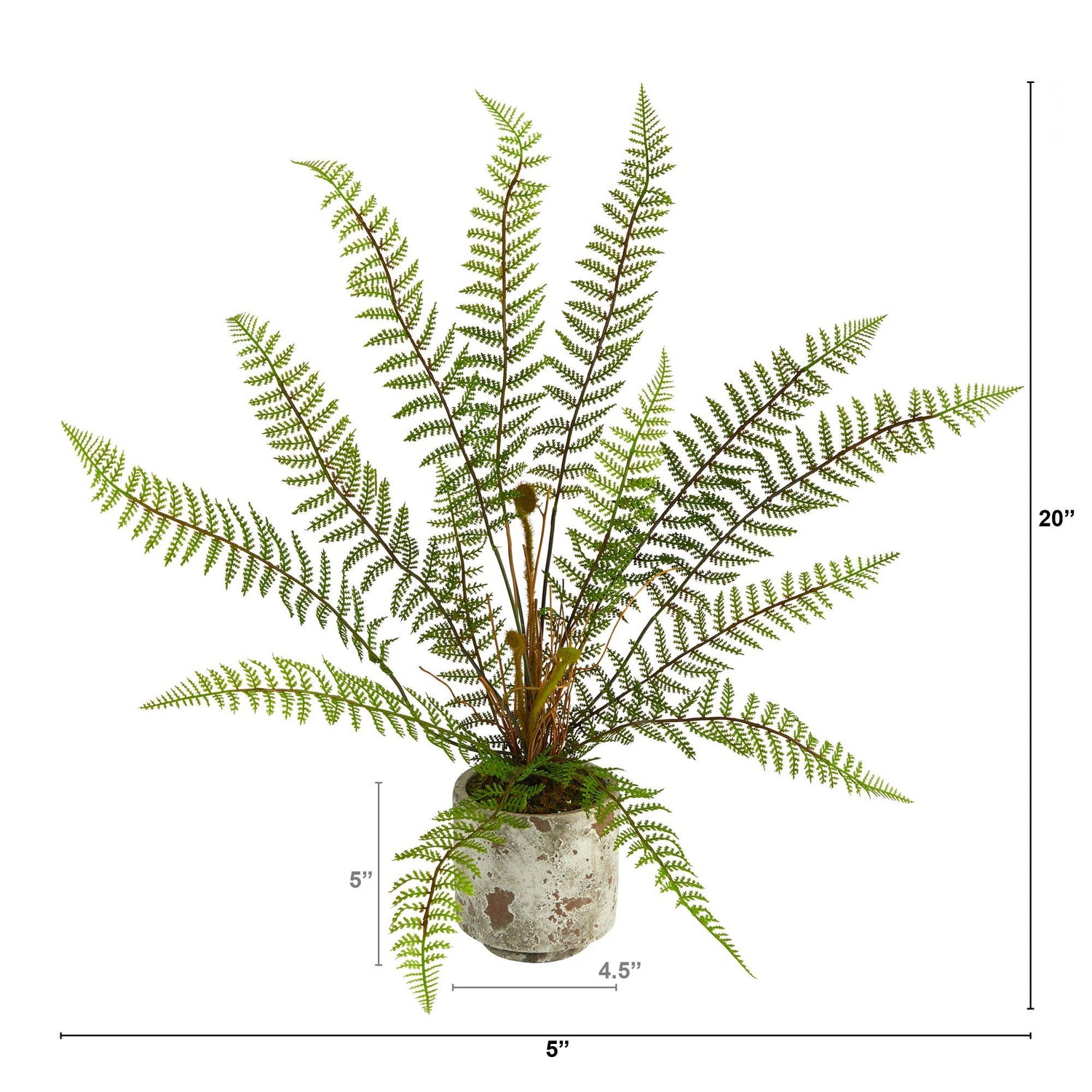 Let the outdoors in with this Fern Artificial Plant. The long, interesting sparse by design fern plant brings a rustic, jungle look to spaces that need some greenery. The fern leaves bring symmetry and visual focal points to spaces that need a little love. Standing 20” from decorative planter (included in height), curate in tight areas. Perfect for awkward corners, bathrooms, kitchens or bedrooms.