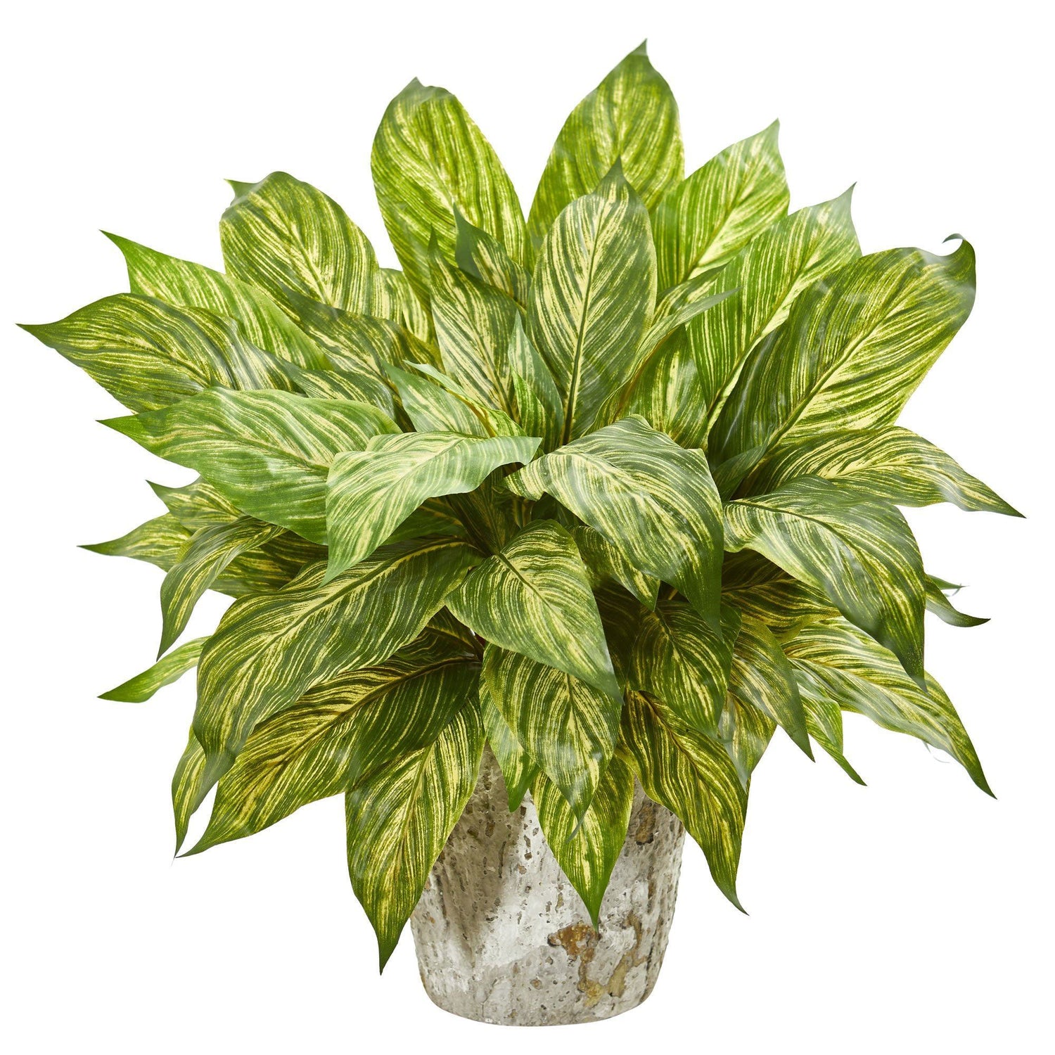 Flaunting a regal color, the large leaves of this musa leaf artificial plant with noticeable streaks will attract your eyes. Situated in a weathered oak planter, consider arranging a pair of them on each side of your entry door. Complete the look by placing it atop a small round table to make it the focal point of this area.