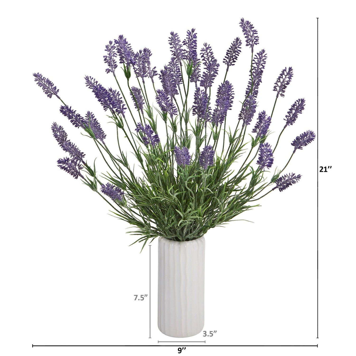 Showcase the countryside’s wild beauty with this artificial lavender plant boasting tall, slender stems littered with tiny, delicate silk flowers in bright, vivid hues. Incredibly lifelike with its natural detailing, this silk plant stands 21” tall from a white planter.