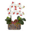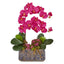 This artificial phalaenopsis orchid arrangement features many soft-looking petals hovering over realistic leaves and a cushion of tiny blooms. Gently spilling over the edges of the included abstract ceramic vase, this stunning 21-inch piece will add color to a white bathroom vanity. You could also place it near a picture frame or porcelain vase on your mantelpiece.