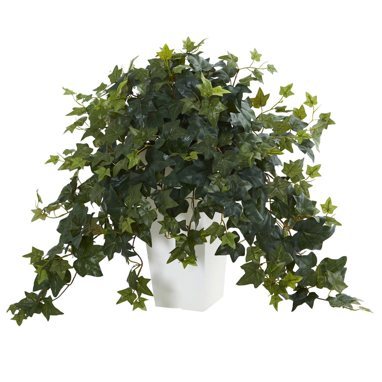 Many small lush leaves combine to create a dense foliage that is supported by a simple white tower vase. Sit this beautiful 22” puff ivy artificial atop any decorative surface to showcase the richness of its falling leaves.
