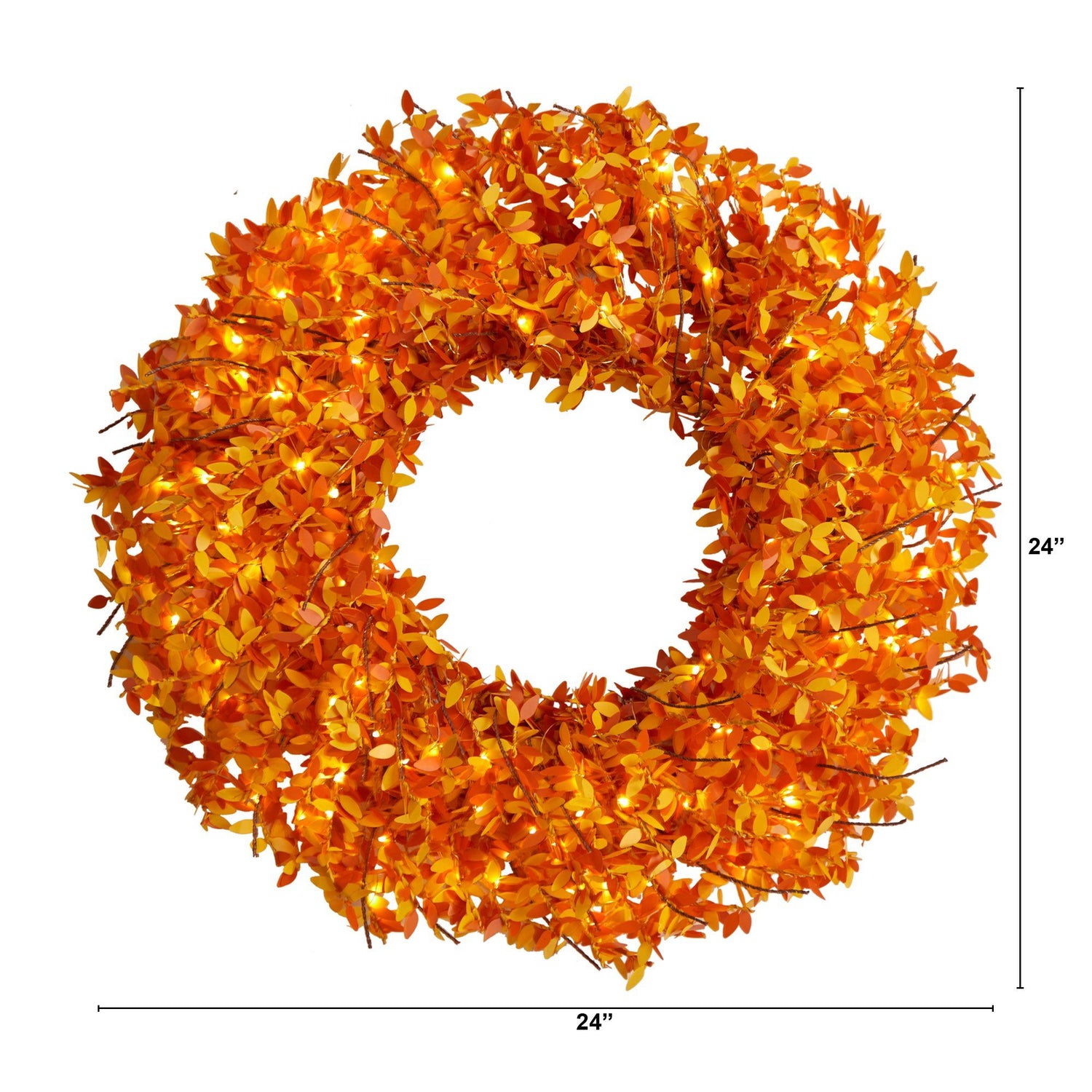 Get ready for cozy nights with this Fall-Inspired Artificial Wreath. Scores of bendable branches in a palette of fall foliage colors are accented by 100 micro dot LED lights that are more fuel-efficient and have smaller pixels for a cozy look. Inspired by nature, display during Thanksgiving dinner and show your festive side. With a diameter of 24" house in any bare wall or door. Perfect for the fall season.