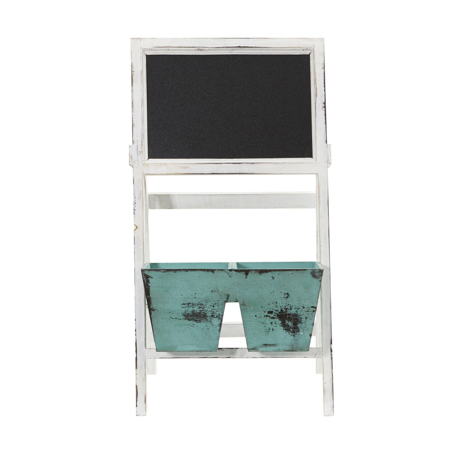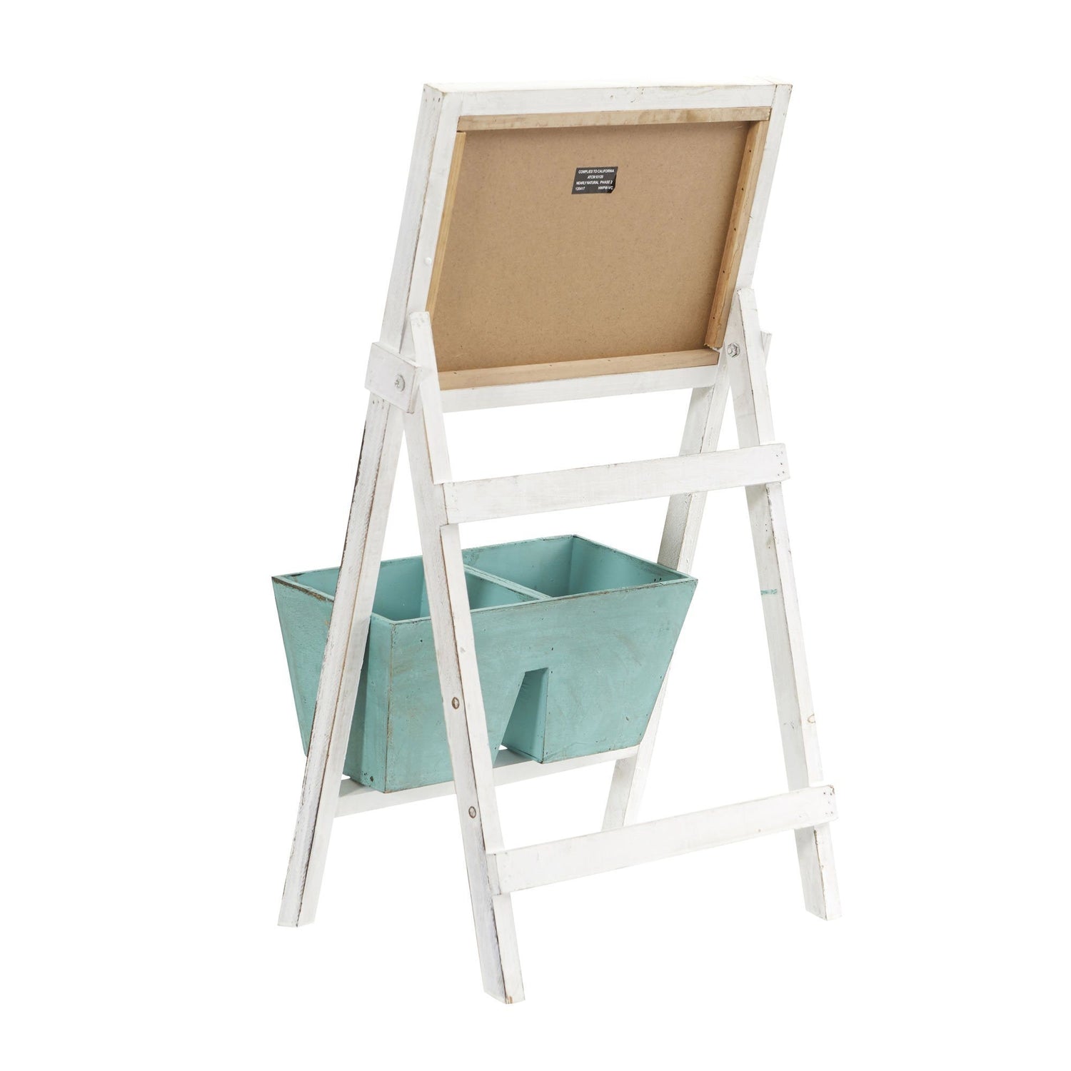 The light blue paint of the two included bins paired with the distressed white paint of the chalkboard stand ensures that this piece will look great in any room that has a rustic theme. Standing at just 26 inches, its the perfect size for any young artist in your life. Place it next to a low window so they will have plenty of inspiration for their next masterpiece.