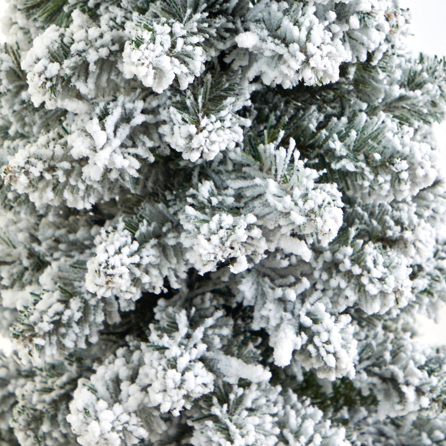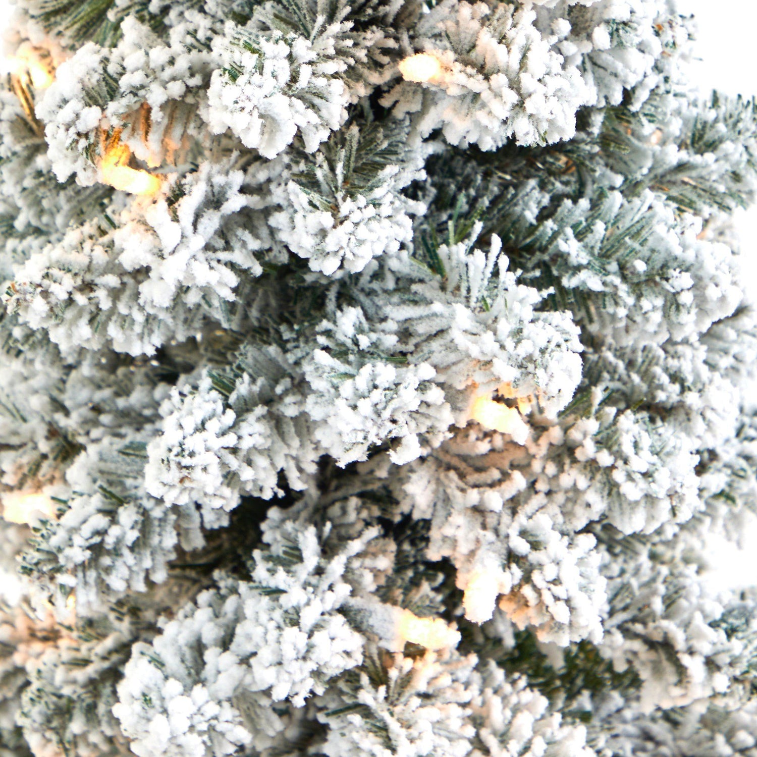 Tight areas deserve some Christmas cheer too. Decorate slim and small spaces such as foyers, corners and apartments with this flocked Pencil Artificial Christmas Tree. Designed by our interior decorators using the highest-quality materials – this incredibly lifelike tree mimics the spectacular foliage and texture of real trees – elegantly decorate the 132 easy-to-bend branches with your favorite mini-ornaments. Arriving pre-strung with 50 clear lights that creates that holiday glow. Standing at 3.5' from a sand colored urn (included in height), transform the tightest spaces into a winter wonderland.