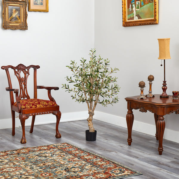 Taste and experience the Mediterranean with this trendy and contemporary Olive Artificial Tree. A symbol of wisdom passed from generation to generation (olives are some of the oldest trees in the world); you can now experience its beauty even if you live in non-olive tree-friendly places. Featuring 966 leaves and easy-to-bend branches, you can customize this faux Olive Tree to fit your space, for added fun, ripe olives adorn the branches. Standing 3.5' tall including its black planter, decorate with your favorite pot and make this piece unique. With a twisting trunk flocked with slender stems, you can say ciao to all guests.