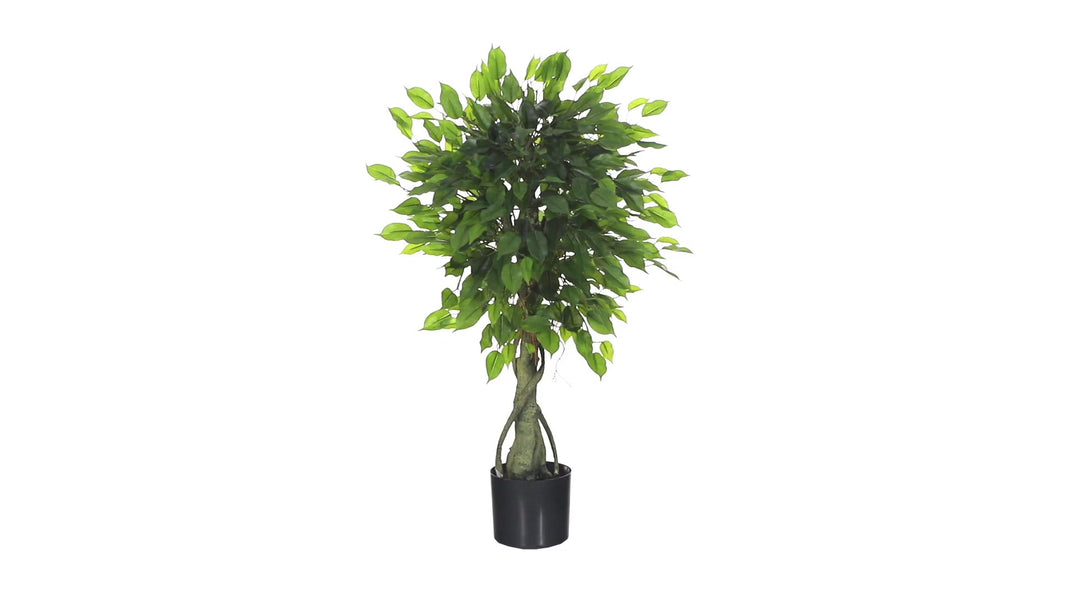 An ideal "small space" accent piece, this wonderful little Ficus tree will be at home in almost any decorating scheme. With 500 fresh-looking leaves bursting forth from the stout trunk, it brings the forest to you. And since it's weather and UV resistant, it looks as well on the patio as it does in your home or office. Makes a thoughtful gift for that hard to buy for person as well.