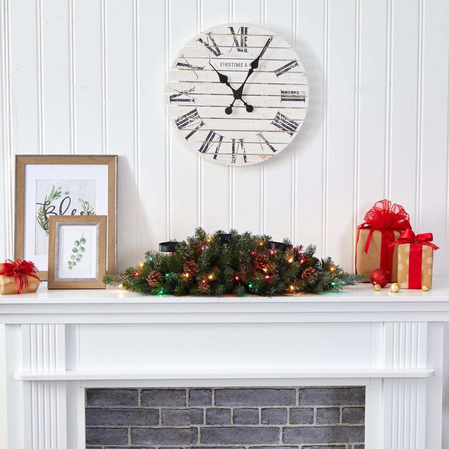 Set your home aglow this holiday season with the help of this artificial candelabrum; specifically designed as an elaborate candle holder, it’s intricately designed from a rich overgrowth of realistic looking evergreens, handsomely accented with miniature faux pinecones, carefully surrounding a trio of candle holders in a light frosting of fake snow. Better yet, this seasonal centerpiece comes already pre-strung with 35 multi-colored lights, eliminating pre-tangled messes and holiday stress. Reaching 30” long, this winter-ready decorative accent would make an enchanting addition to a mantle or a holiday-inspired tablescape.