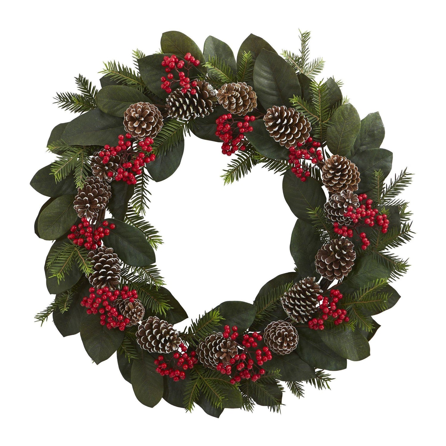Featuring its lush arrangement of red berries and lifelike pinecones that are set on top of a rich mix of green magnolia leaves, this berry pine artificial wreath will easily blend in any seasons and even both monochromatic or vibrant palettes. To bring the spirit of the holidays into your home, drop a magnolia garland on top of your door and place this berry pine artificial wreath in the center to make a wonderful festive arrangement.