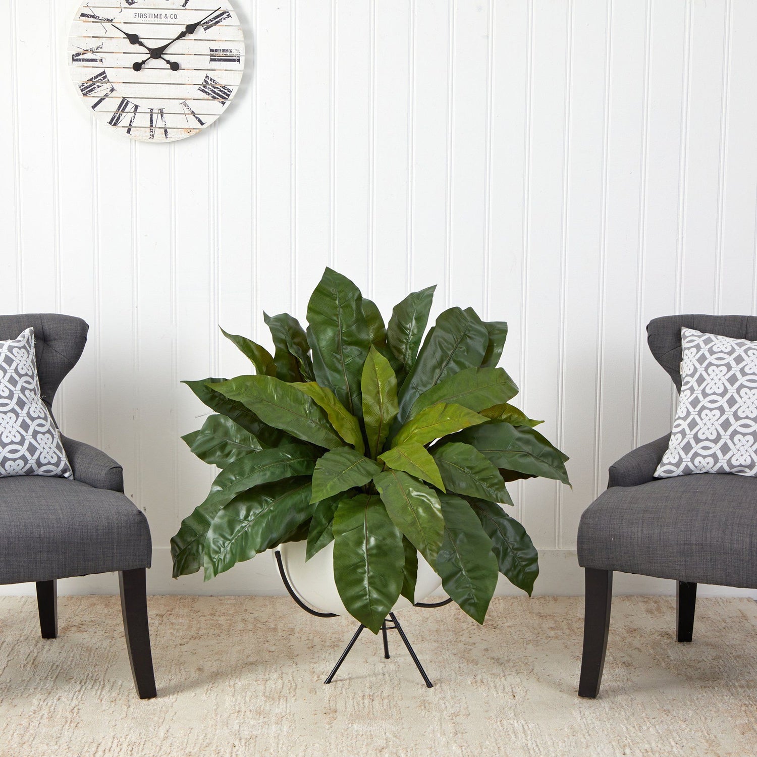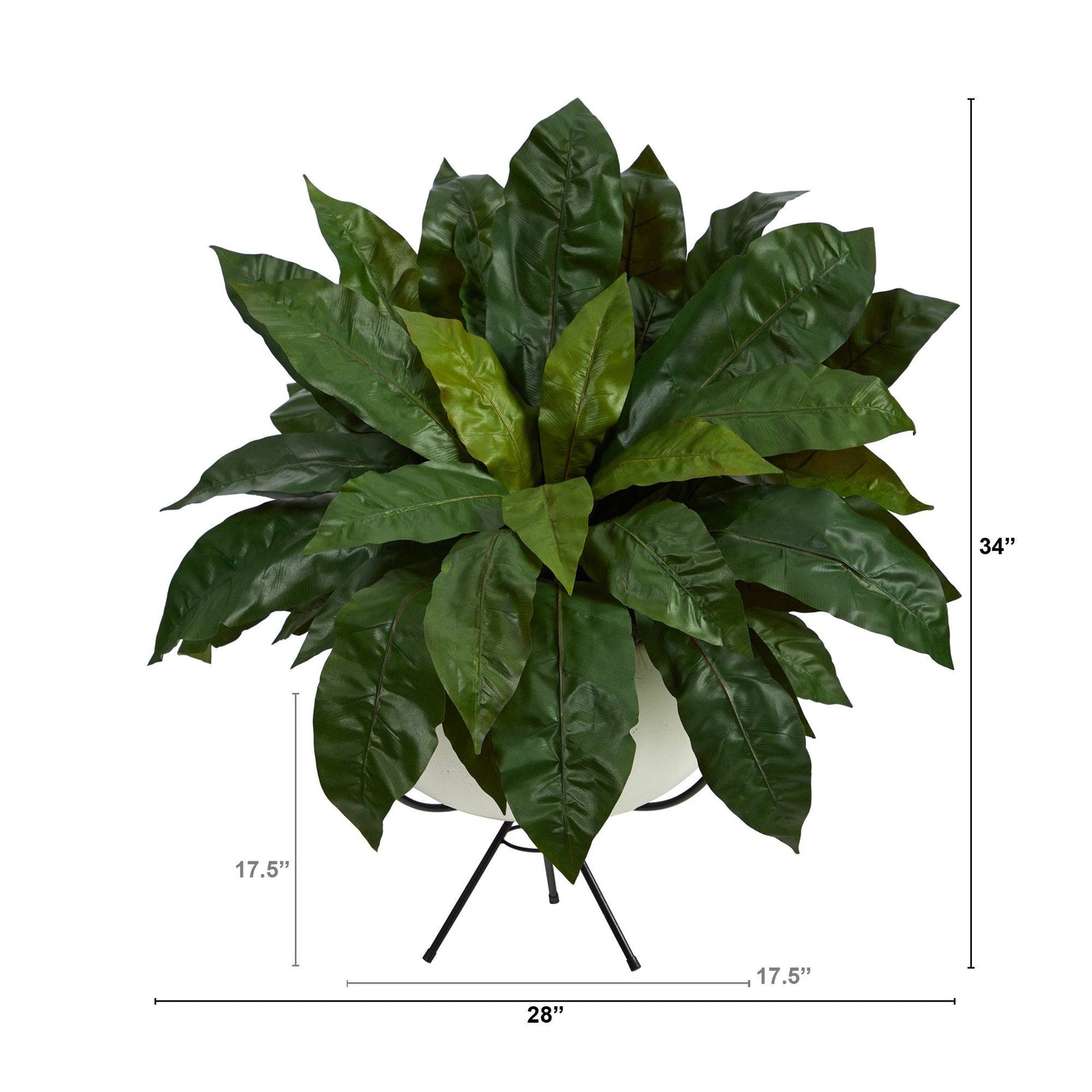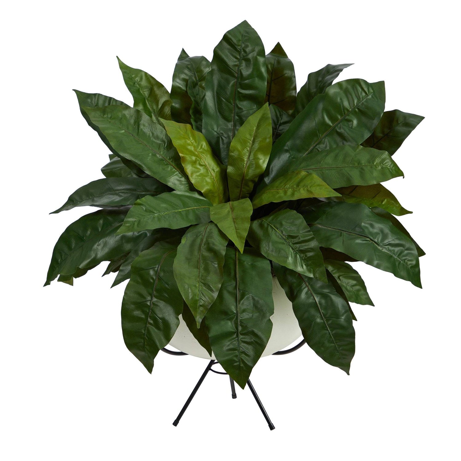 Let the outdoors in literally with this Bird's Nest Artificial Tree. Tiers of cascading fern like Bird Nest leaves wrap around the planter in a drape like manner. Incredibly lifelike, you’ll guarantee it’s always summer in your space, even the birds will think it is real. Standing 34" from a white planter with metal stand, enhance indoor living areas with nature inspired greenery. Makes a lovely gift for a friend.