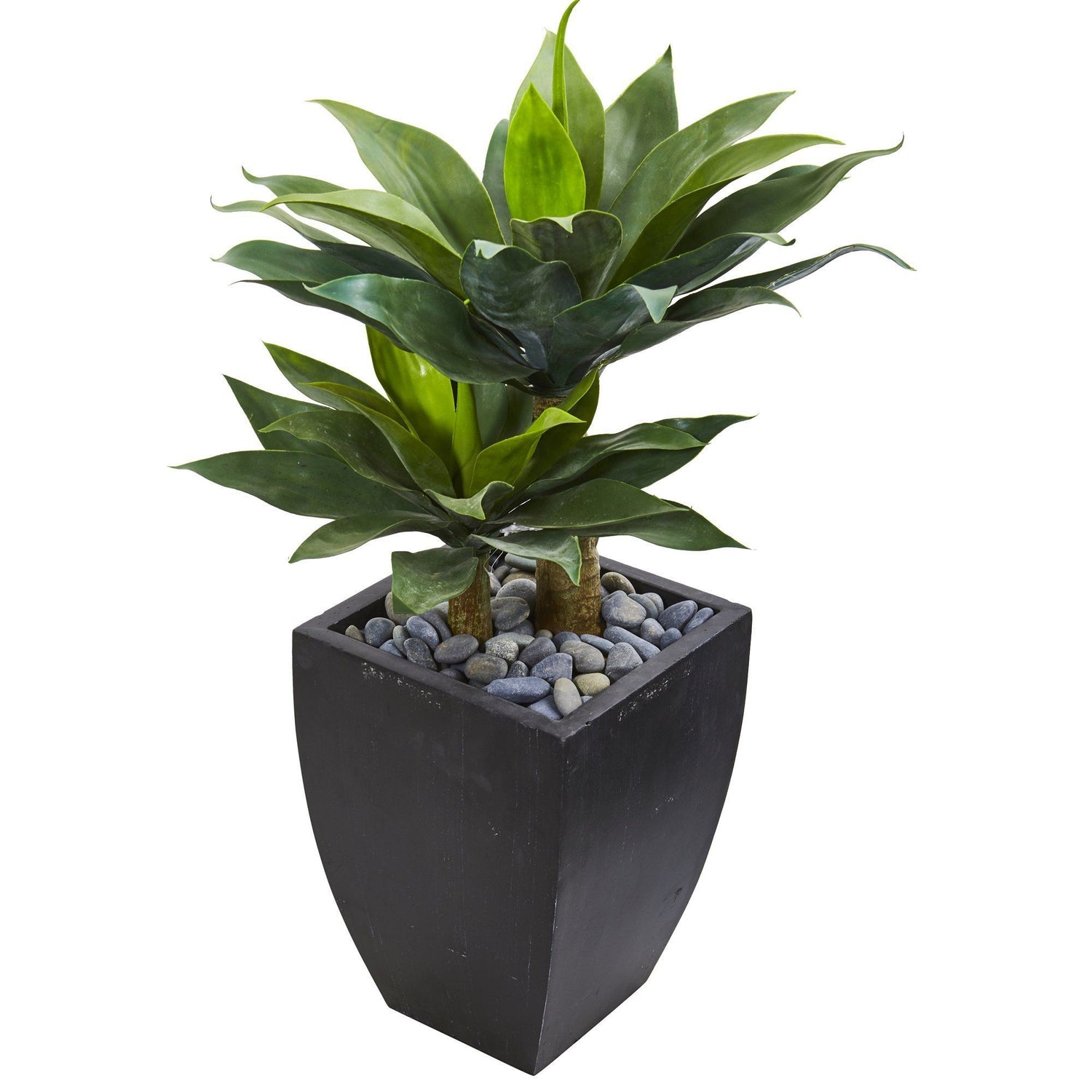 Make your own tropical paradise with this artificial double agave plant consisting of authentic looking leaves boasting lifelike characteristics in naturally occurring hues. Fixed in a black planter accented with river rocks, this 37” tall succulent makes for a handsome accent in a kitchen or family room.