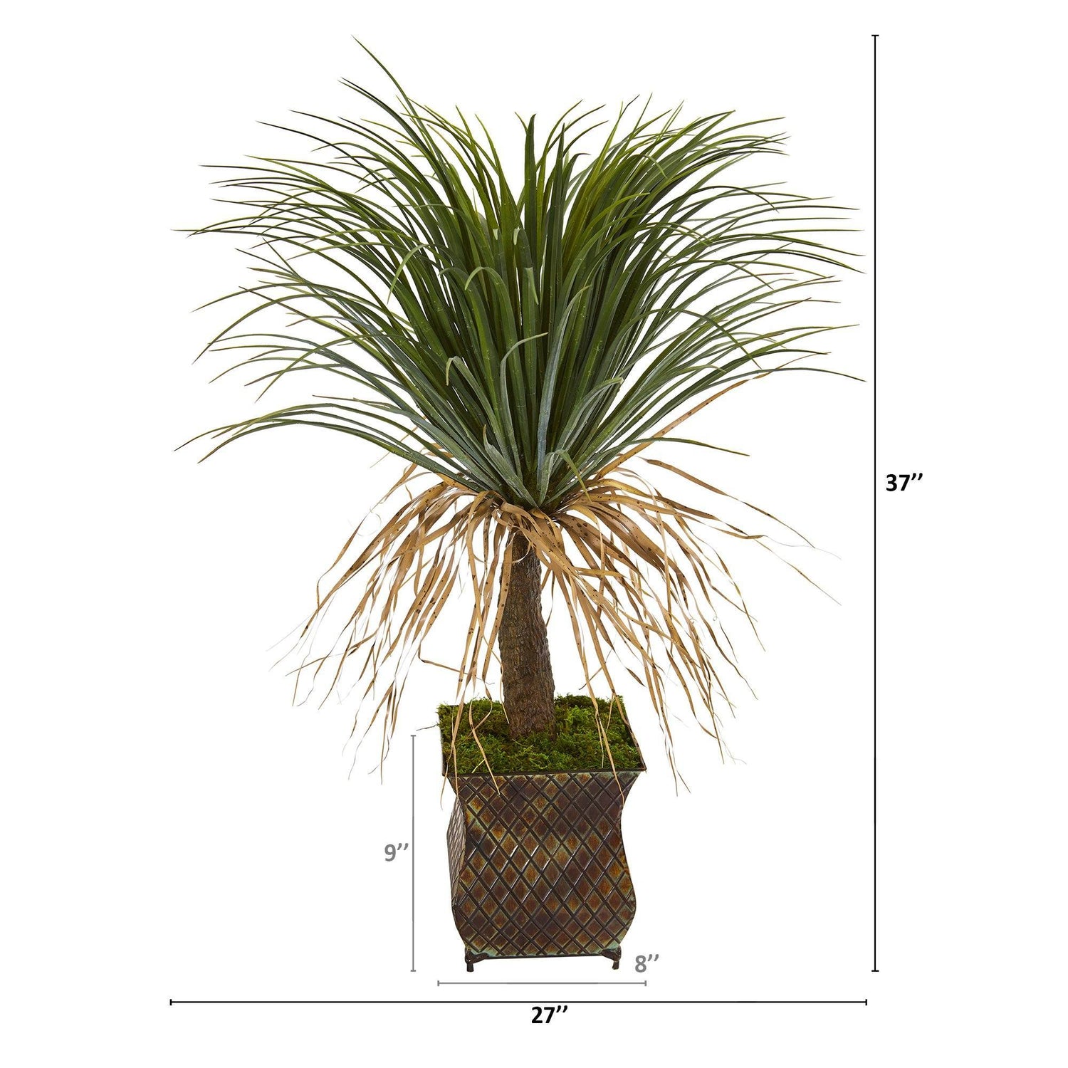 Accent tight spaces with the natural looking texture provided by this artificial plant boasting loosely tufted shoots of molina grass in naturally occurring hues. Great for adding a sense of life to everyday environments, this fake plant stands 37” high from a decorative metal planter.