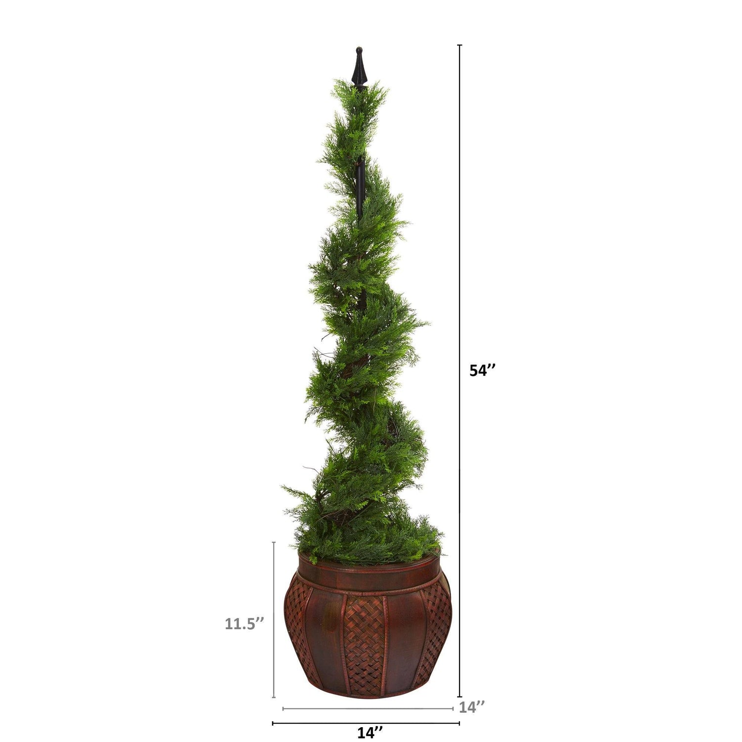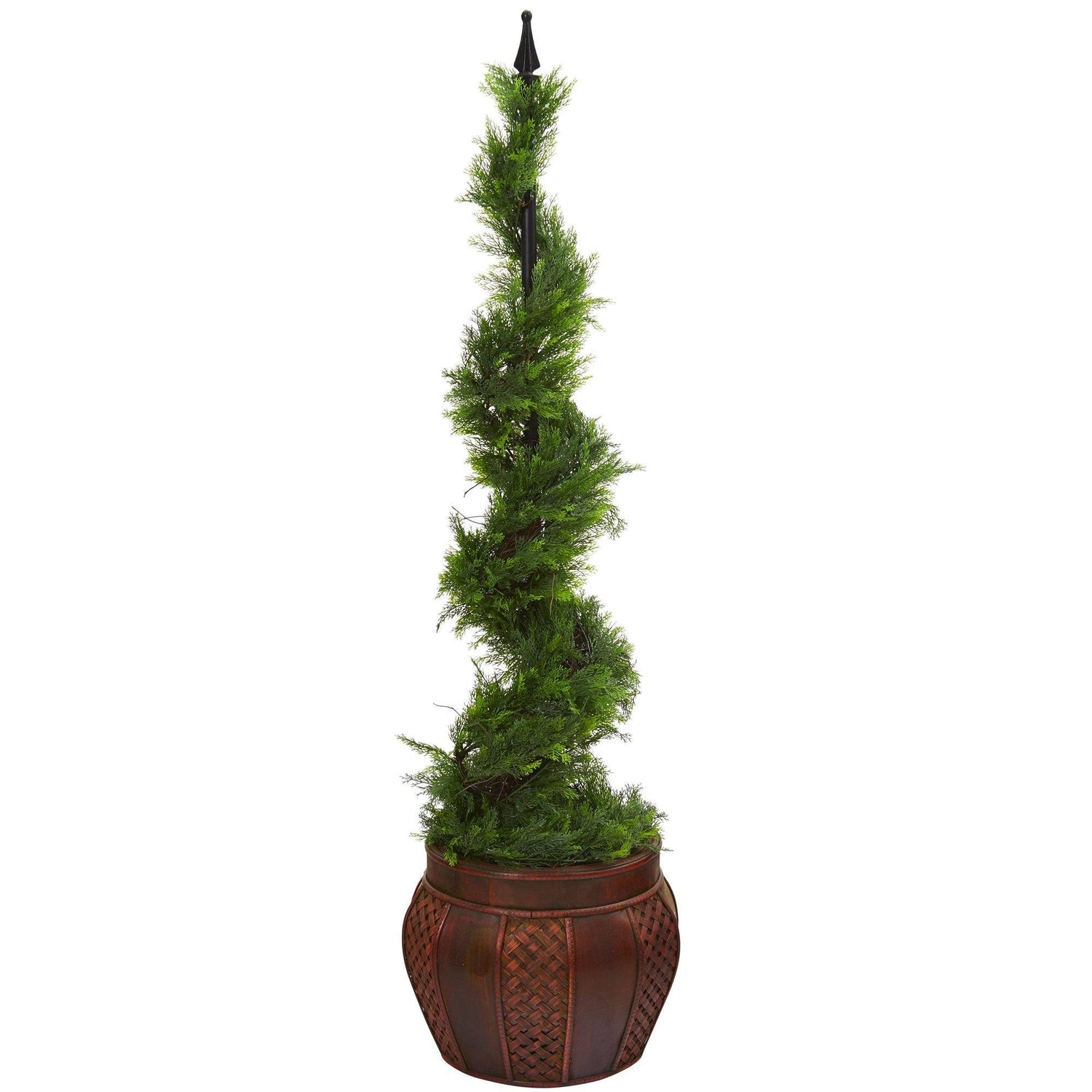 Enjoy the beauty of perfectly manicured greenery with the help of this artificial tree boasting a perfectly trimmed spiral made of realistic cypress foliage in dark, green hues. Great for accenting entrances/exits or sprucing up a bare hallway, this well-pruned fake tree stands 4.5’ high from a decorative planter.