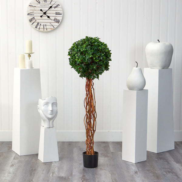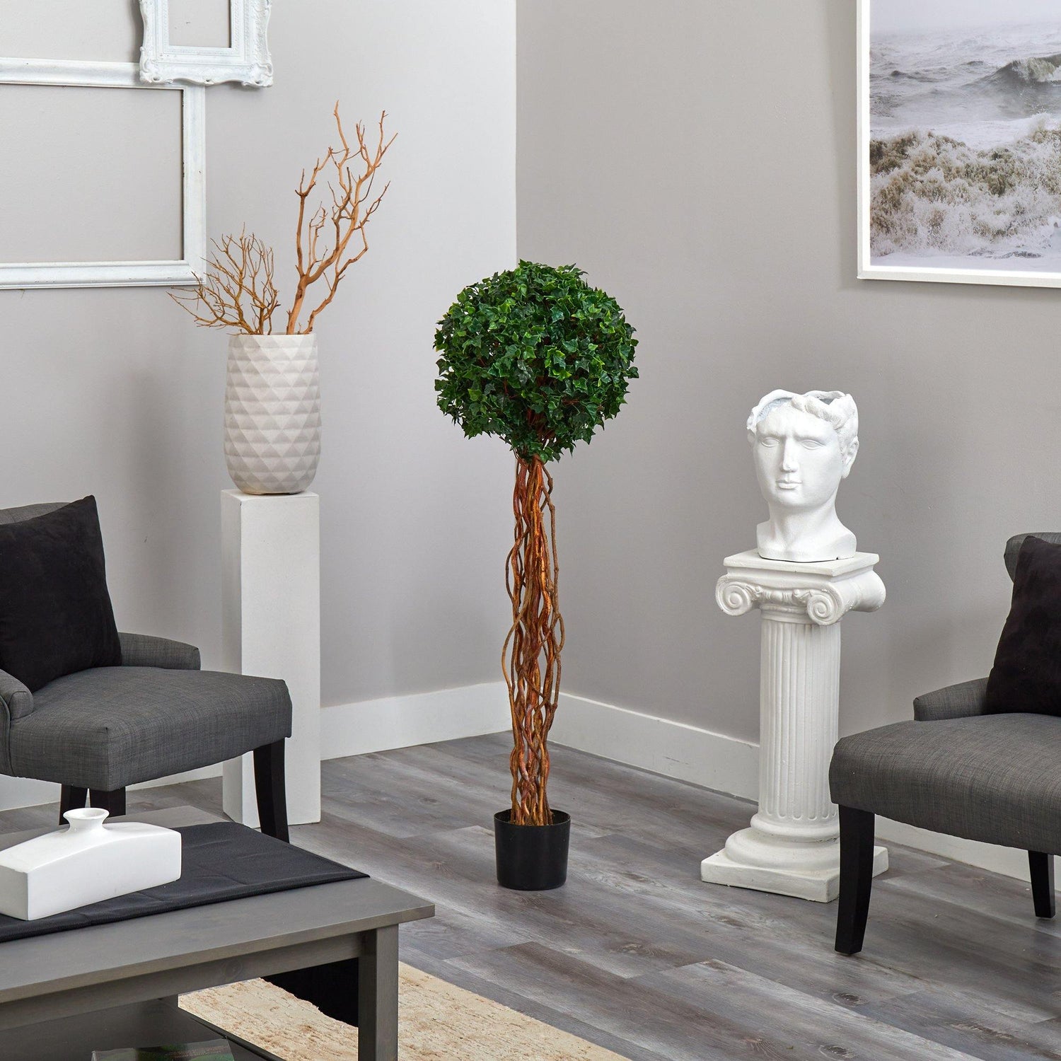 Create the romantic garden of your dreams with this English Ivy Topiary. With real, natural braided trunks and a single ball of English Ivy, this tree is inspired by the most enchanting European gardens in England and France. Standing at 4.5’ tall, you can recreate the look by decorating inside or outside safely as this piece is UV resistant. Design in multiples along an entryway or path for a clean touch. We also carry this topiary in a larger 5.5’ if you crave a unified look.