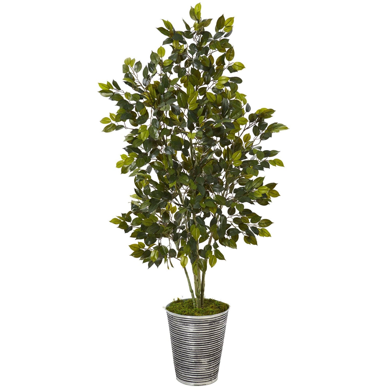 Set up a fresh, relaxing environment in your home or office with the help of this artificial tree boasting a rich overgrowth of bushy ficus foliage, handsomely designed with naturally occurring details and coloration. Standing 4.5’ high from a decorative tin planter, this fake tree would instantly revitalize any space it inhabits.