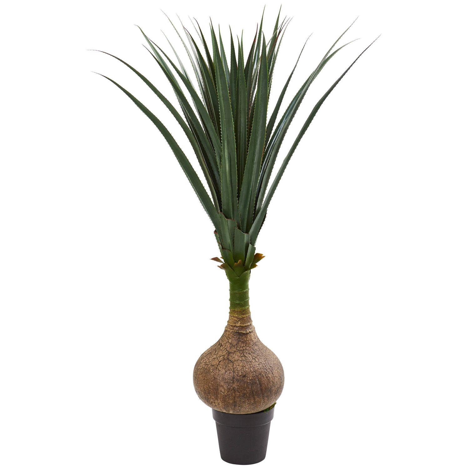 With multiple long, sharp green leaves that have the appearance of growing straight out of the large bulb at the base, this 4.5’ yucca artificial plant has a fun and different appearance. Set it on top of a white or black vase so as to expose the unique bulb and arrange it on your entry table with a stack of books and a woven basket that holds your essentials.