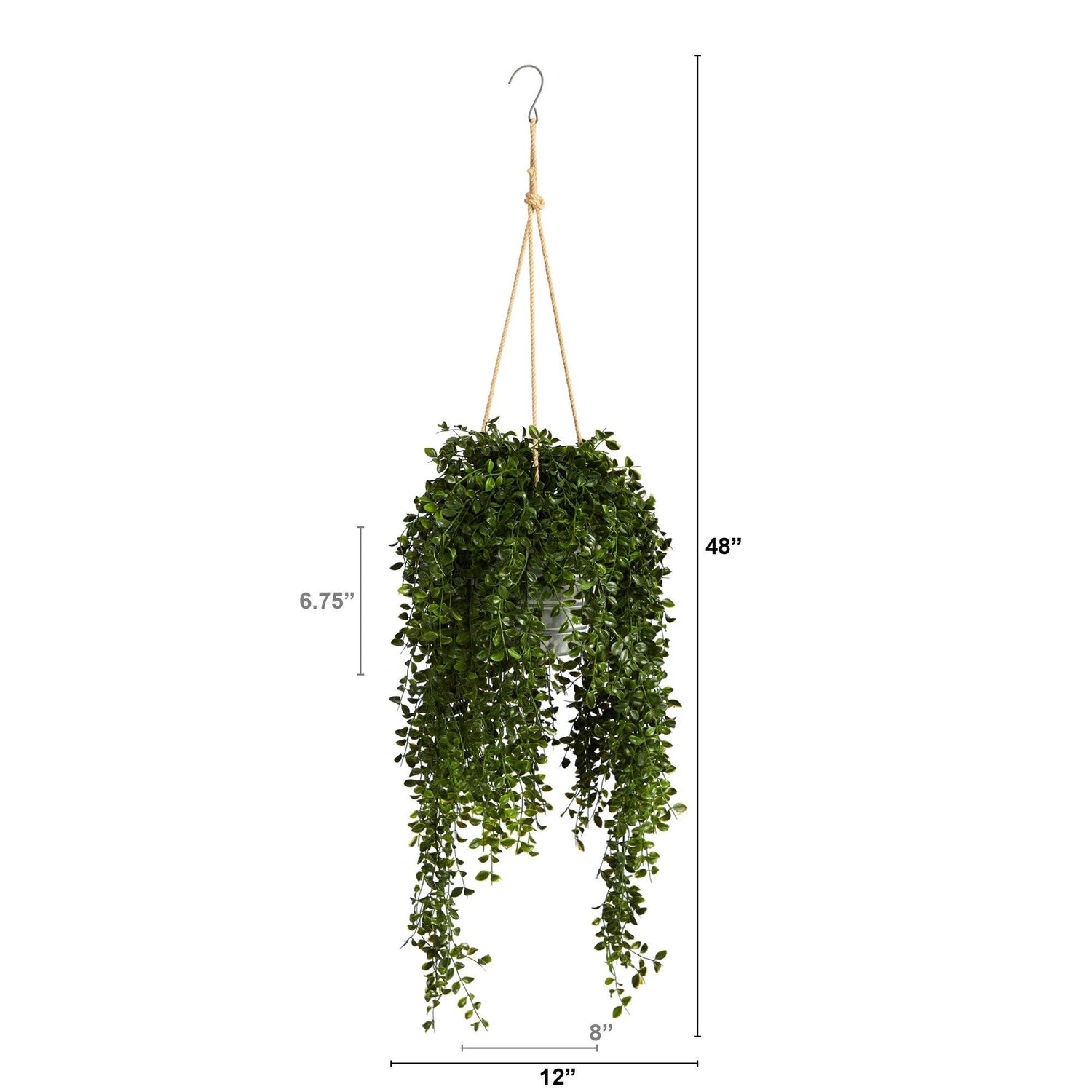 Tight on space? Need not worry with this Gleditsia artificial hanging plant. An overflow of Gleditsia leaves spill from a hanging basket for a fresh from the jungle look. Feel free to place outdoors; this faux plant is safe for indoor/outdoor areas. With a height of 4', from top to bottom, curate in spaces that need a vertical refresh. Perfect for apartments, sliding patio door, near a window for a tropical look, or near the kitchen shelf.