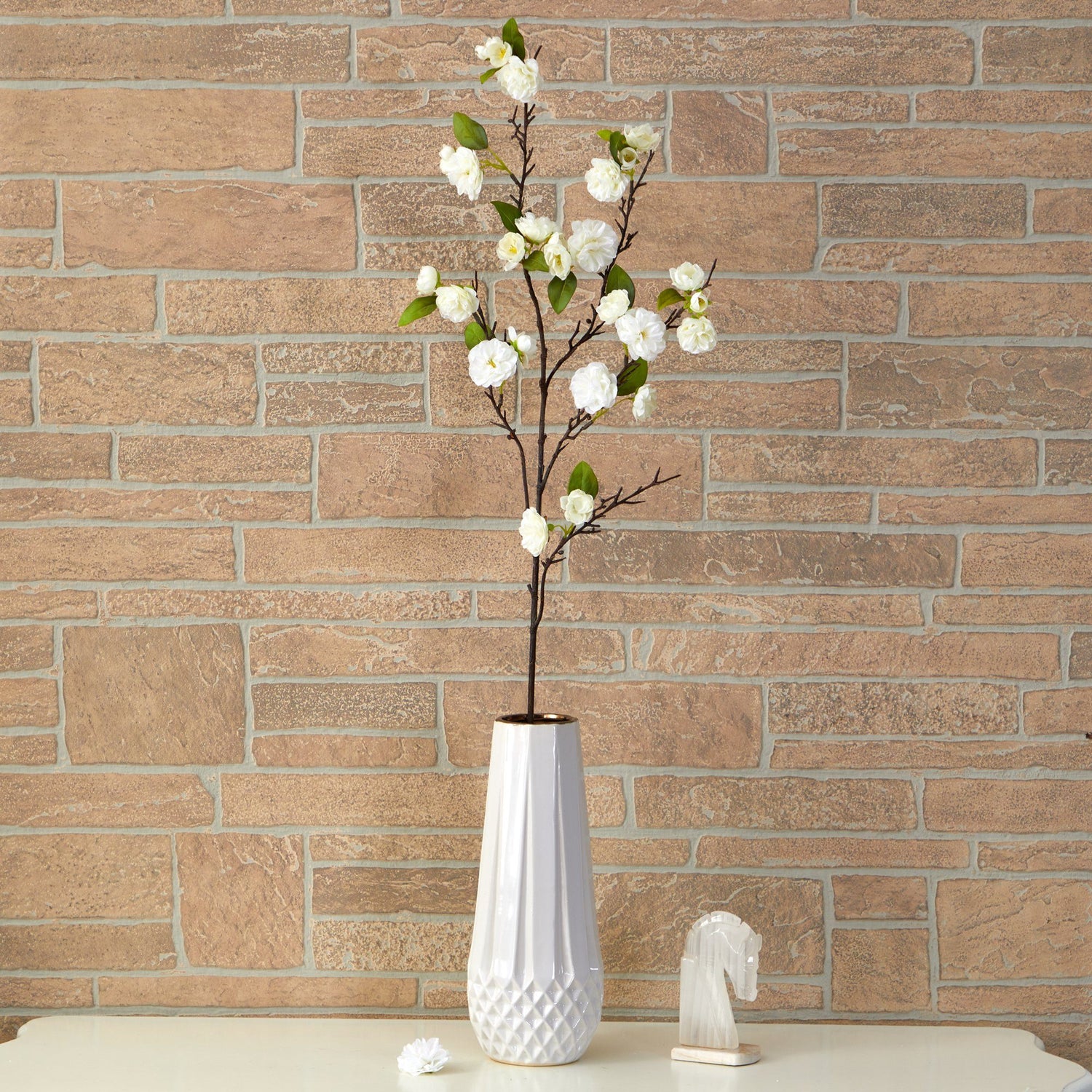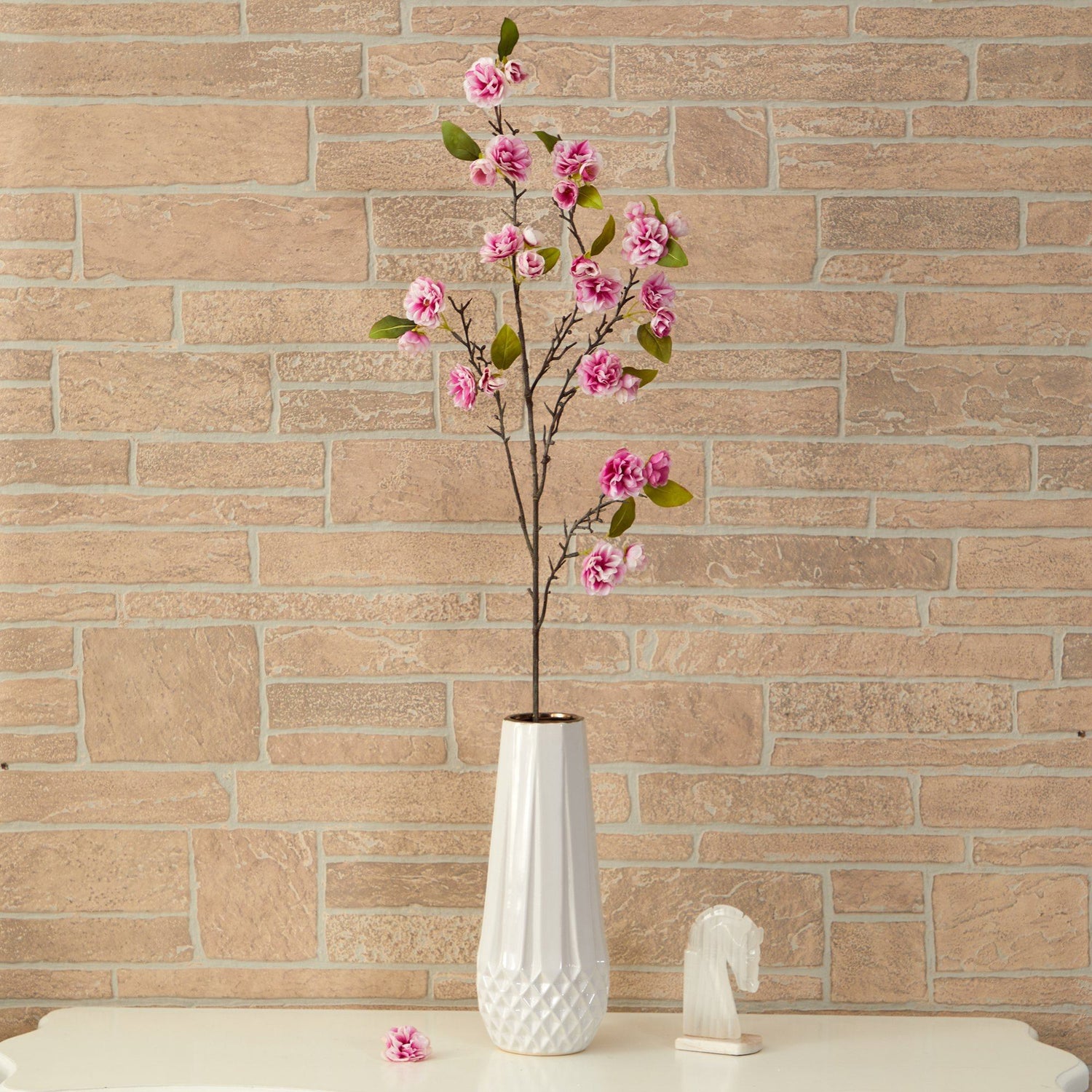 Use delicate beauty to highlight a bare space with this loose set of artificial flower stems; boasting countless branches designed with intricate silk cherry blossoms in soft, fresh hues and highlighted with complementary green foliage. Perfect for creating your own customized flower arrangements or showcasing individually throughout everyday interiors, this set of three is perfect for adding a softness to otherwise hard surfaces.