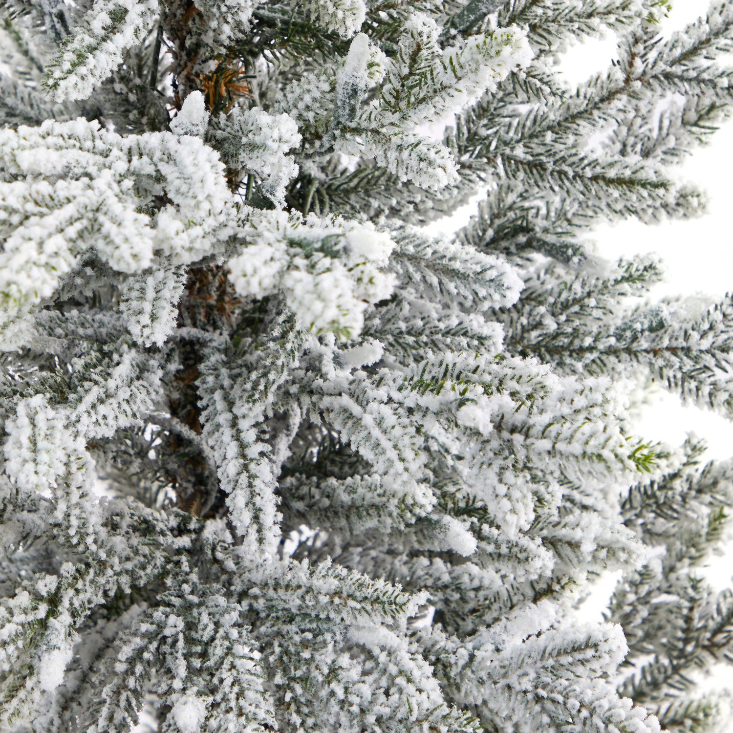 If you dream of a white Christmas, look no further; this flocked Fraser Fir Artificial Christmas Tree makes your wish come true with a realistic replica of winter. Designed to mimic a winter wonderland – 967 incredibly lifelike upward sloping easy-to-bend branches with the texture and foliage of a real tree – allow you to DIY in your space. Create a candle-like, warm glow with 300 warm, white pre-strung Xmas lights, saving you time and money. Standing at 5’ from a gray planter (included in height), this artificial Christmas tree is perfect for compact spaces that need a powdery enchanting winter look.