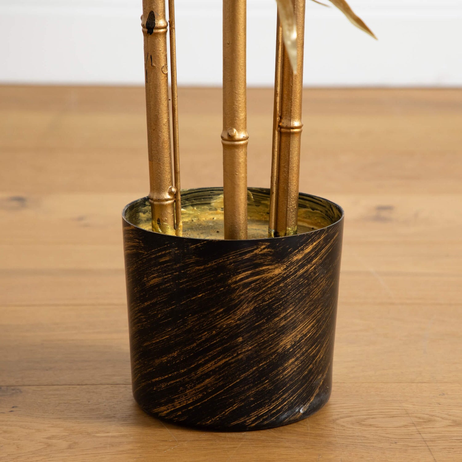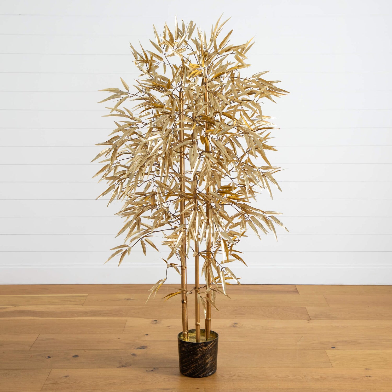 Reaching a striking five feet high, this beautiful Golden Bamboo Tree is a lush arrangement that showcases 880 vivid leaves cascading out from its decorative pot in a fountain of foliage. Each and every part of this tree is complete with a gold finish to add that extra bit of “Zing” to any décor. The long leaves create unique patterns, which look great from any direction. Best of all, there’s no need for water or upkeep! Just find that perfect place in your home or office, and the rest takes care of itself.
