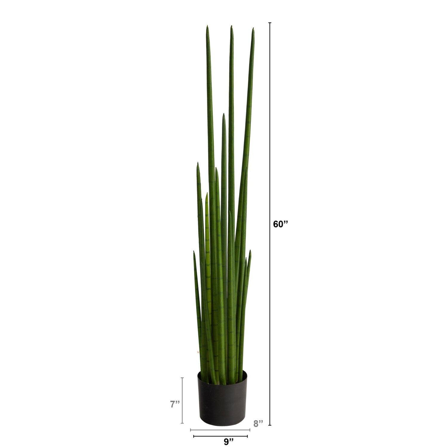 ZZZ, this artificial snake plant is sure to complement your décor. Inspired by nature, staccato long fronds with naturally occurring detail arch upwards. If you're into a minimalist lifestyle, you will fall for this artificial plant. Assembled from high-quality materials, we guarantee this piece will last. Standing 5' from a black nursery planter, house in any table that needs a touch of green. Perfect for an office, living room, or bedroom.