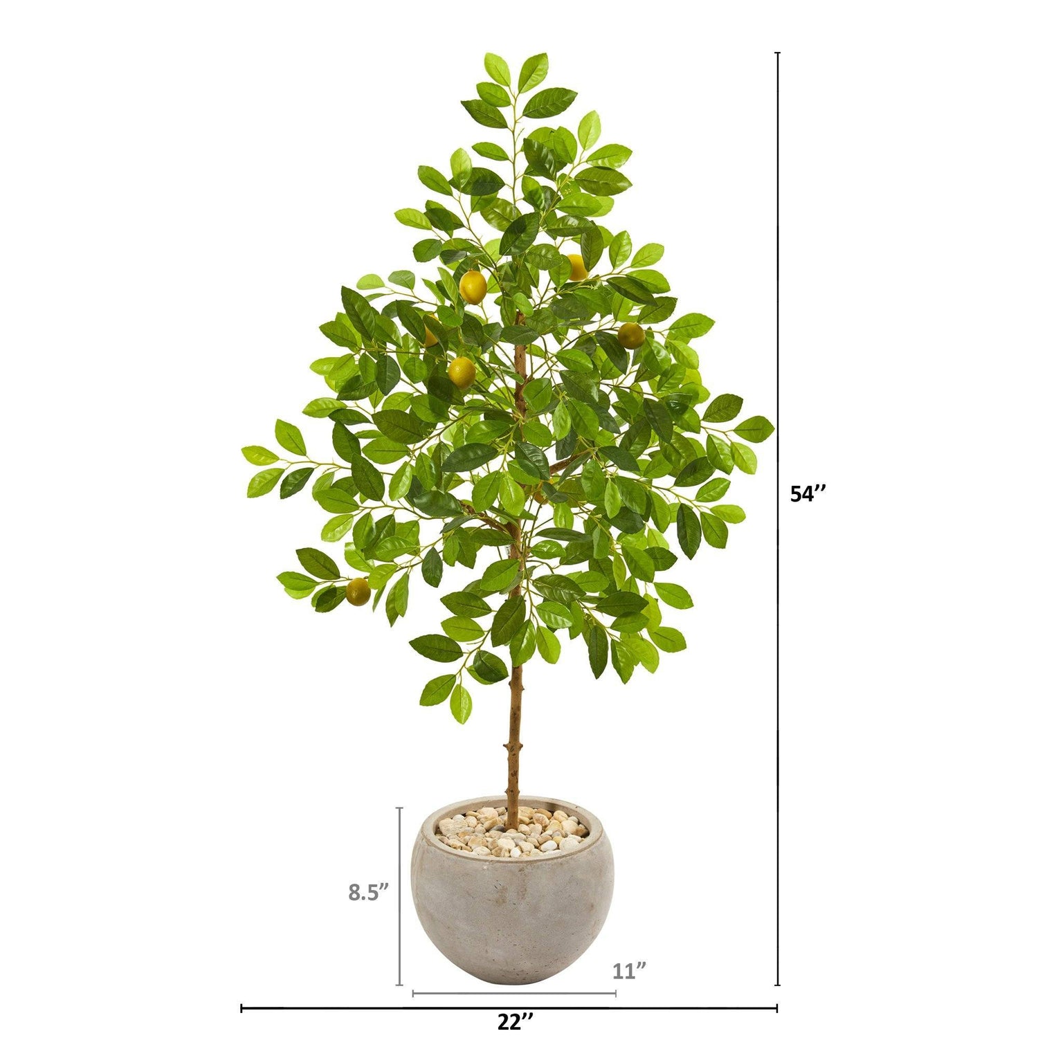 Keep your home feeling fresh year-round with this artificial lemon tree featuring lush, vivid leaves that highlight small bright lemons that appear almost lifelike. Reaching 54” high from a sand colored planter, it would instantly bring sunshine to a brightly lit kitchen.